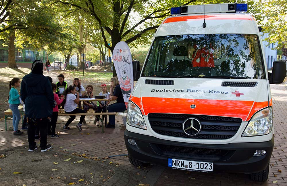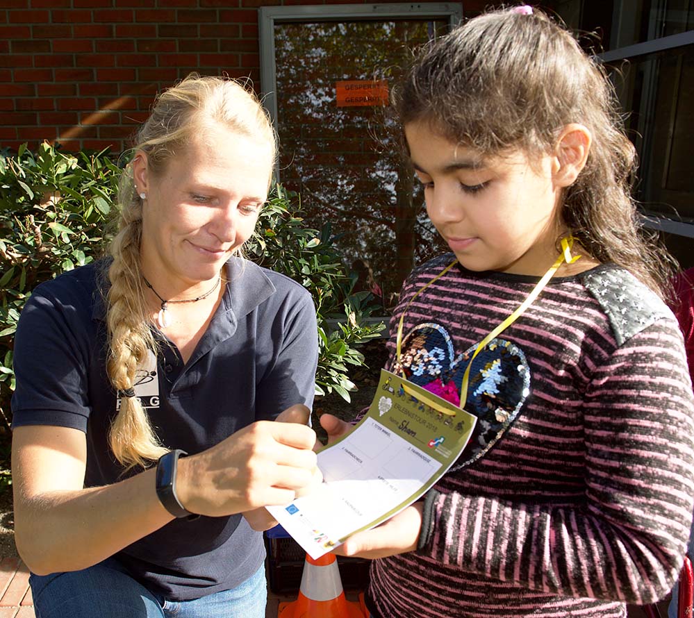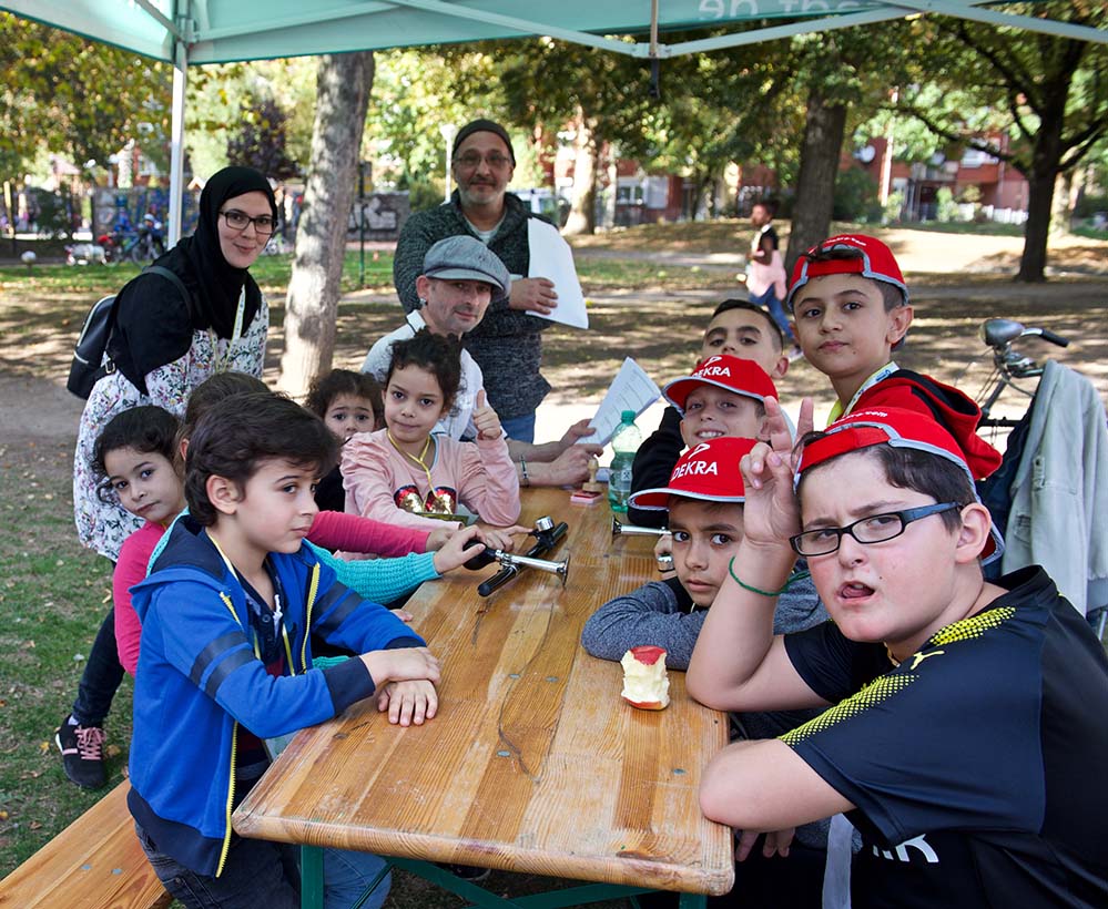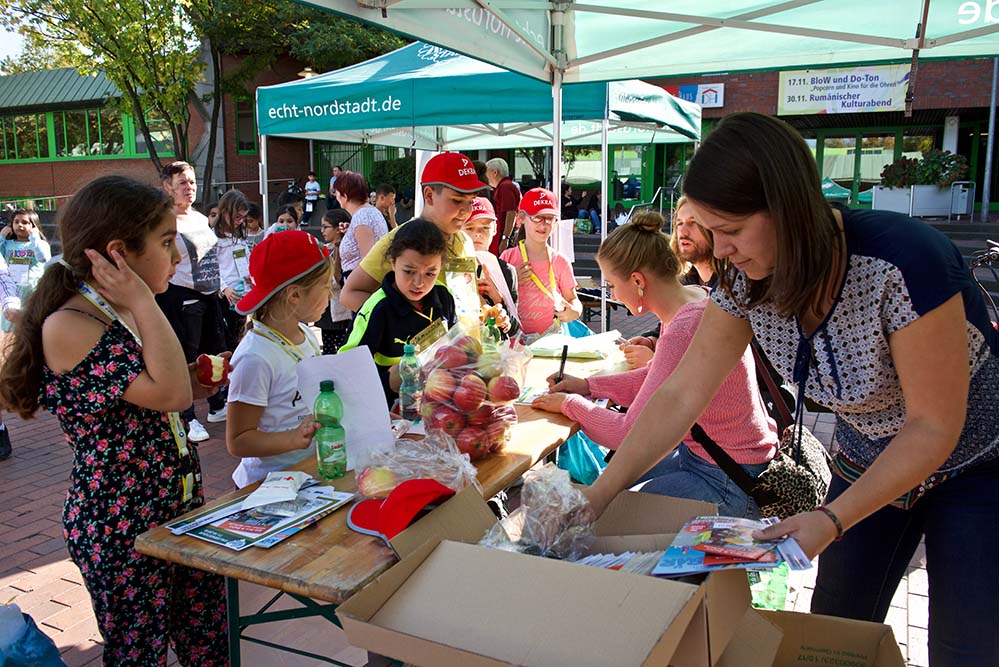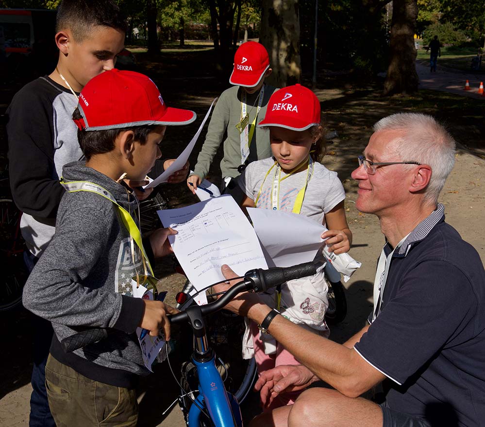 Jedes Kind erhielt im Vorfeld einen kinderfreundlich gestalteten Laufzettel, mit dem an jeder Station ein Stempel gesammelt wurde. Nach dem erfolgreichen Durchlaufen aller Stationen erhielt jedes Kind eine Urkunde. Parallel zur aktiven Einbindung der Kids ins Programm, gab es eine Reihe an Informationsständen zu unterschiedlichen Themen des Kinderschutzbundes, der Polizei und des Quartiersmanagement.