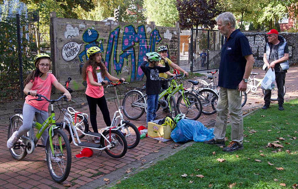 Im gesamten Park und auf dem Vorplatz des Dietrich-Keuning-Hauses in der Leopoldstraße wurden sechs Stationen für Kinder aufgebaut. Hier konnten sie auf spielerische Art und Weise lernen, Gefahren zu erkennen und einzuschätzen und sich in bestimmten Situationen richtig zu verhalten, um sicher am Verkehr teilzunehmen. Insgesamt nahmen unzählige Kinder und ganze Klassenzüge einiger Nordstadtgrundschulen das Angebot wahr.