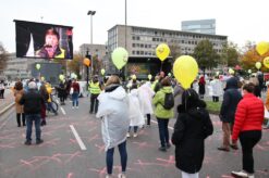 Aufgemalte Kreuze auf dem Boden, vom Südwall bis zum Stadttheater, sollten dafür sorgen, dass der Mindestabstand eingehalten wird, und sie sollten symbolisieren, wie viele Menschen eigentlich dort gestanden hätten, wenn die aktuelle Pandemie nicht gewesen wäre. Auf Abstände wurde weitestgehend geachtet.