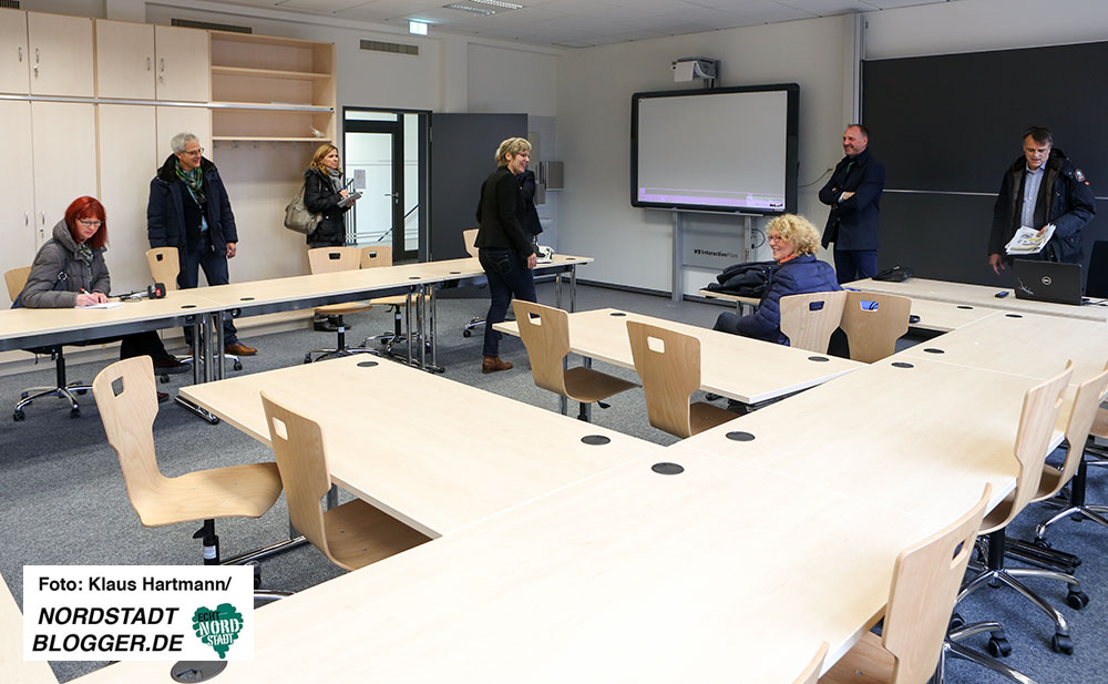 „Da möchte man doch fast wieder unterrichten“, bemerkt die ehemalige Lehrerin und aktuelle Schuldezernentin der Stadt Dortmund, Daniela Schneckenburger, beim Rundgang durch die Räume der fast fertig gestellten Gebäude des Robert-Bosch- und Robert-Schuman-Berufskollegs.