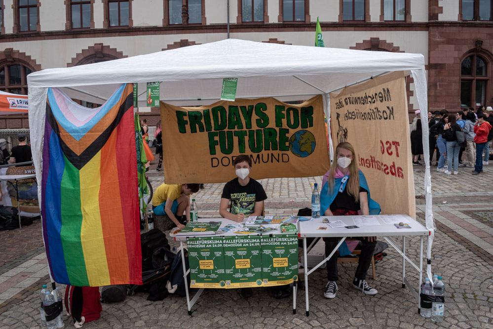 Auf dem Platz vor der Bühne waren den ganzen Tag über zahlreiche Infostände aufgebaut. Parteien, Beratungsstellen und Initiativen informierten hier über ihre Themen und Angebote. Daneben war auch der Dortmunder Impfbus aufgebaut, dessen Angebot nur mäßig in Anspruch genommen wurde.
