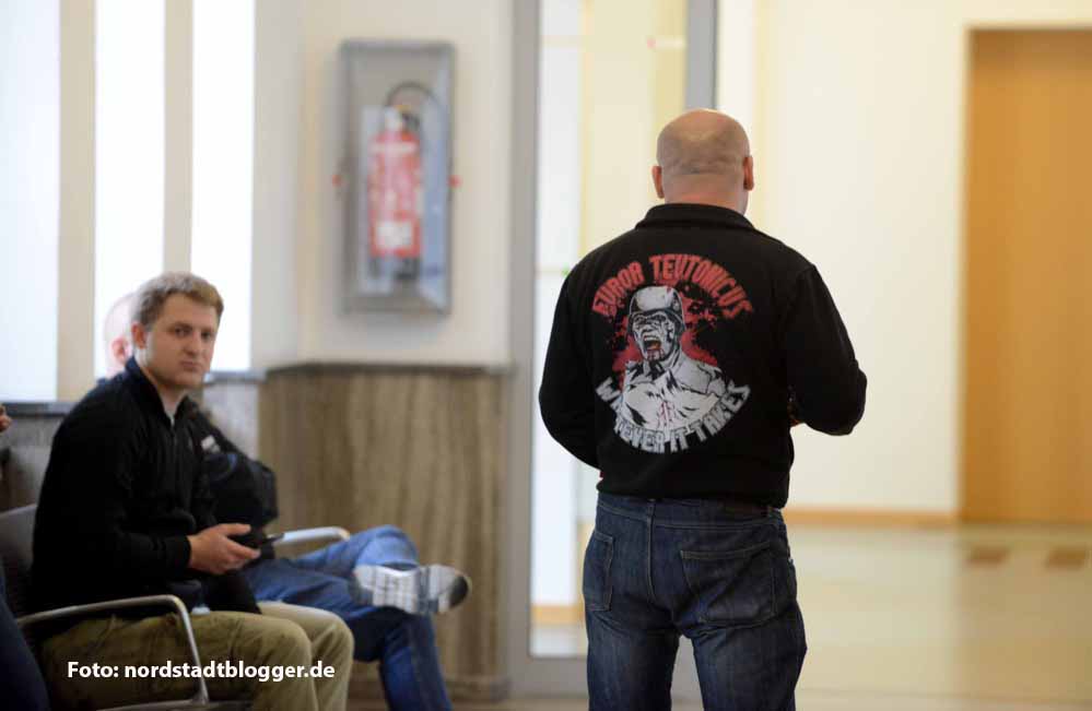 Erstes „Rathaus-Sturm“-Verfahren: Prozess gegen Neonazi Patrick B. (von hinten). Fotos: Nordstadtblogger
