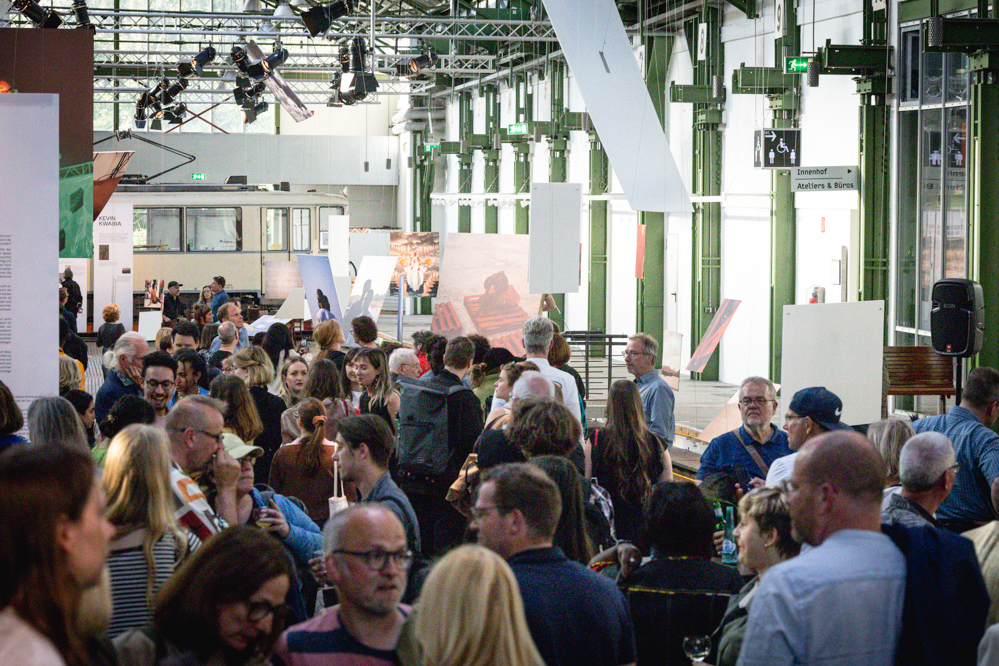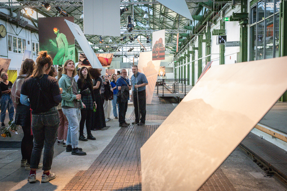 Ihre Kollegin Marie Köhler pflichtet ihr bei: „In dieser großen Halle gibt es sehr viel, was ablenkt. Daher ist die Konzeption der Studierenden dahingehend so wunderbar, dass durch das Schweben der Bilder neue Blickwinkel entstehen, die das Betrachten in Bezug auf die Werke im großen Raum verdichten.“