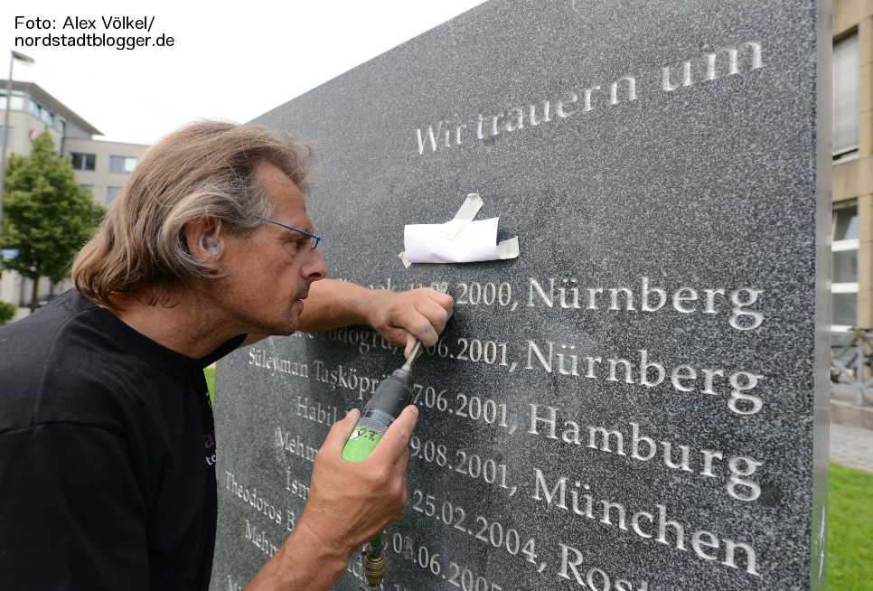 Bei den falschen Gravuren handelt es sich um die Todestage von Enver Simsek und Ismail Yasar, die beide in Nürnberg ermordet wurden. Simsek starb am 11. September 2000 an den zwei Tage zuvor erlittenen Schussverletzungen. Auf dem Mahnmal war bedauerlicherweise der 11. November als Todestag angegeben. Ismail Yasar wurde am 9. Juni 2005 ermordet und nicht wie fälschlicherweise angegeben am 5. Juni 2005.