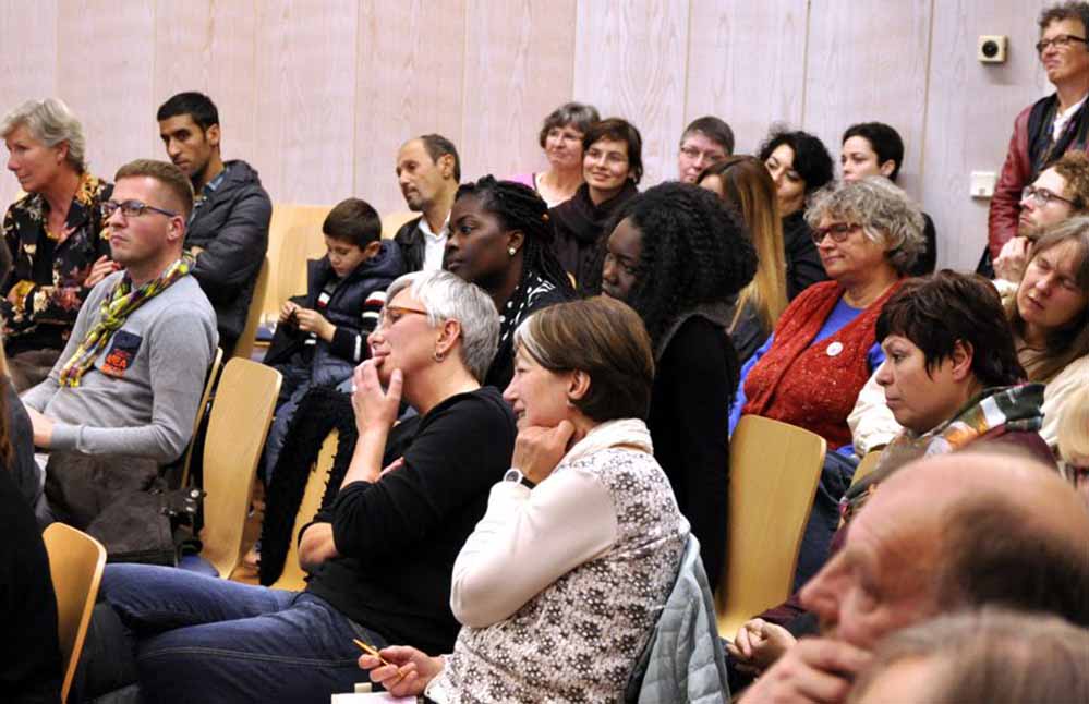 Neben sachlichen Fragen und Hinweisen, kamen auch leidenschaftliche Plädoyers auf, die dem gesamten Publikum aus dem Herzen zu sprechen schienen, so z.B. das einer Teilnehmerin: „Wenn wir auf Fremde treffen haben wir die Wahl: Wir können mit Angst oder mit Neugier reagieren. Ich habe mich für Neugier entschieden.“
