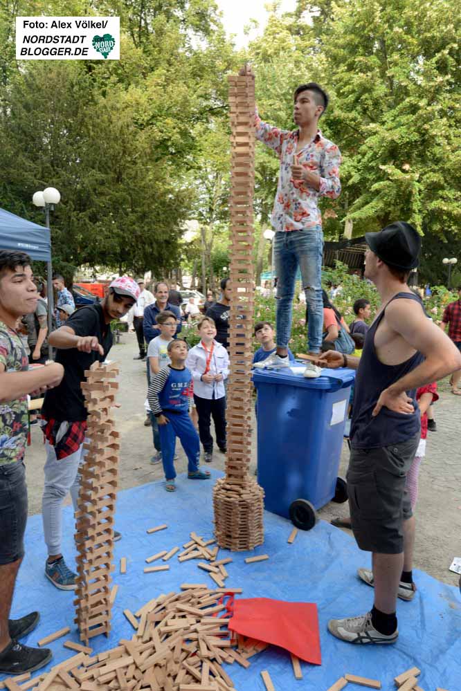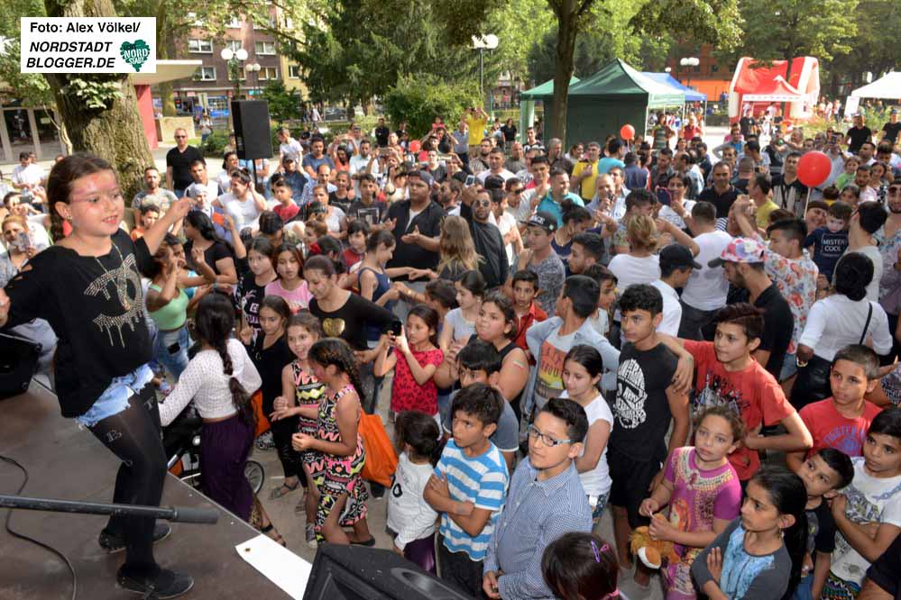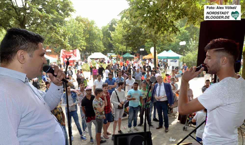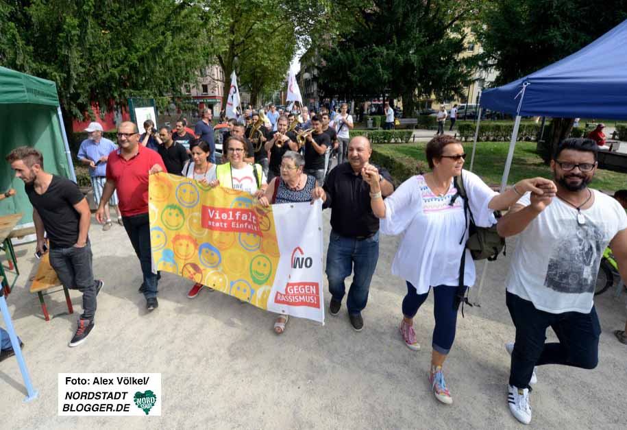 Herzlich und jubelnd wurde der Demonstrationszug schließlich auf dem für das Familienfest vorbereiteten Nordmarkt empfanden. Vor der Bühne waren Zelte aufgebaut. Es war alles dafür getan, dass sich Neuzugewanderte und Alteingesessene in einer netten Atmosphäre begegnen konnten.