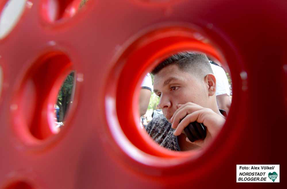 BewohnerInnen der Nordstadt, Zugewanderte aus aller Herren Länder mit unterschiedlichen Hautfarben. Die meisten von ihnen schauten zunächst erstaunt, waren aber dann sichtbar begeistert. Von der Straße wurde aus dem Demonstrationszug zu ihnen herauf gewinkt. Viele der Menschen an ihren Fenstern drückten mit erhobenen Daumen ihre Zustimmung für das einmalige Spektakel aus. S