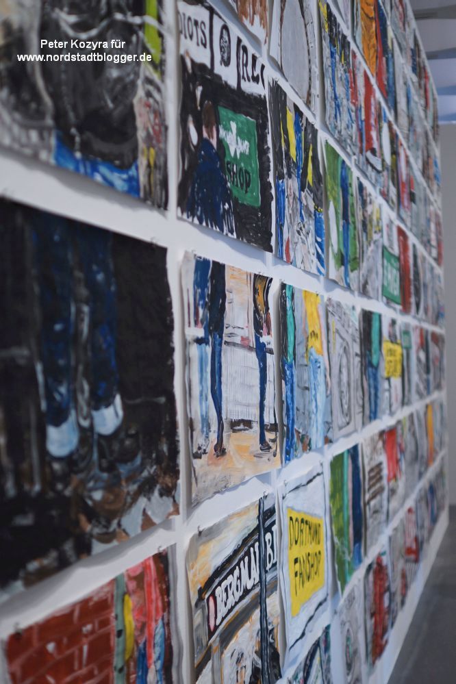 Die Gemälde basieren dabei auf Schnappschüssen, die der Künstler auf seinen Wegen fotografiert hat, während die aufgezeichneten Klänge und Gespräche in verabredeten Field Recordings entstanden sind. Beides ist im Schaufenster des Museum Ostwall für den Besucher zu sehen und zu hören und in der Kombination ein interessanter künstlerischer Einblick.