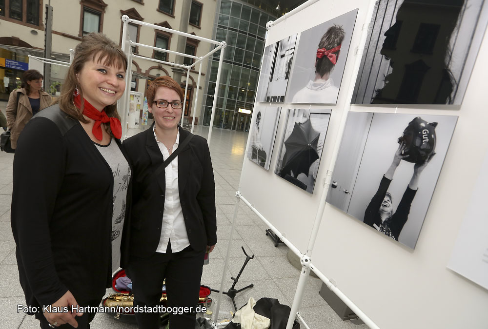 Ausstellung: Starke Frauen, ein Fotoprojekt aus der Nordstadt. Im Portait zu sehen: Sparkassenfrauen Iris Kosumi und Astrid Wohlert, v. l.