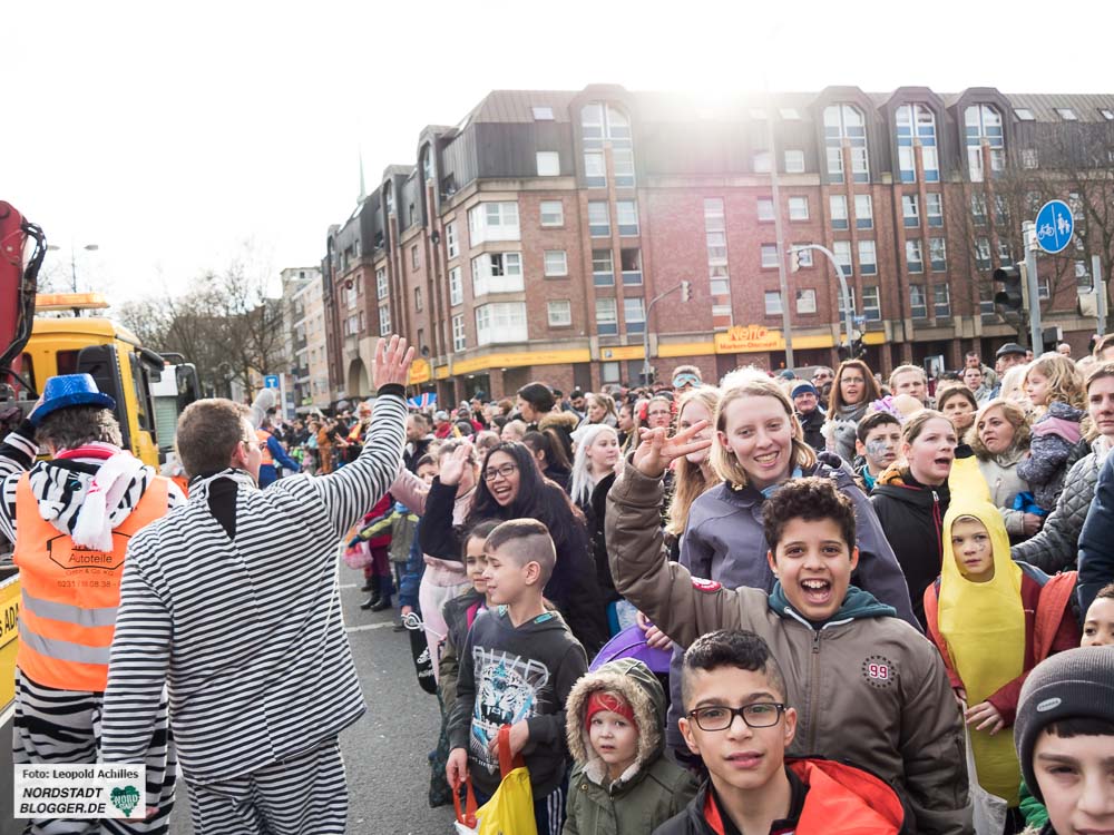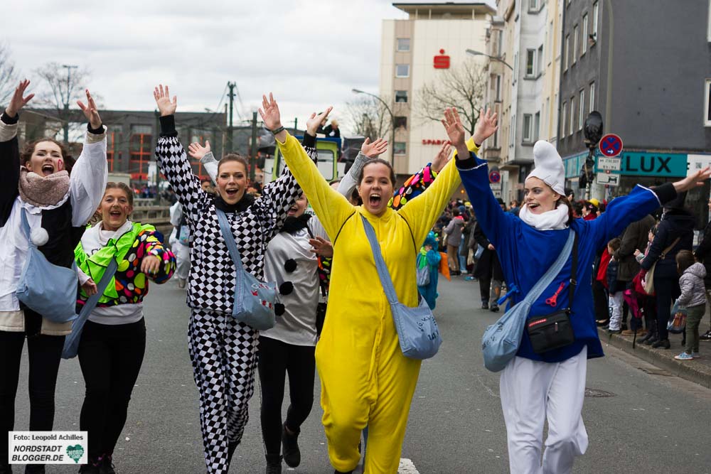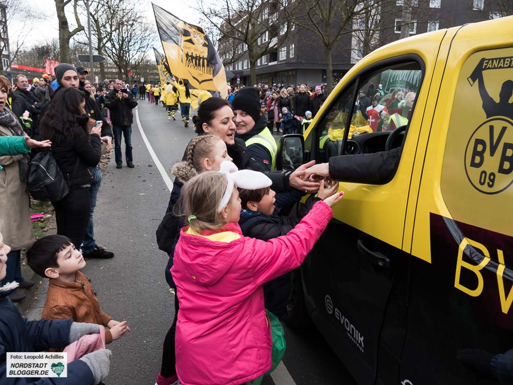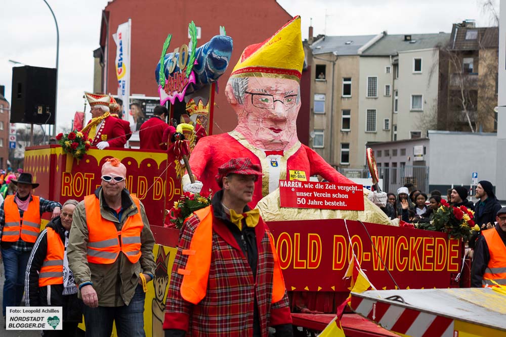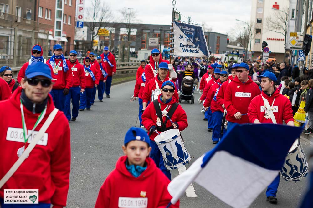 „Dortmund Helau!“: Schätzungsweise zwischen 100.000 und 150.000 Menschen verfolgten in Dortmund den Rosenmontagszug. 22 Wagen und 22 Musikgruppen machten sich am Nachmittag vom Festplatz Eberstraße in der Nordstadt auf den Weg in die City.