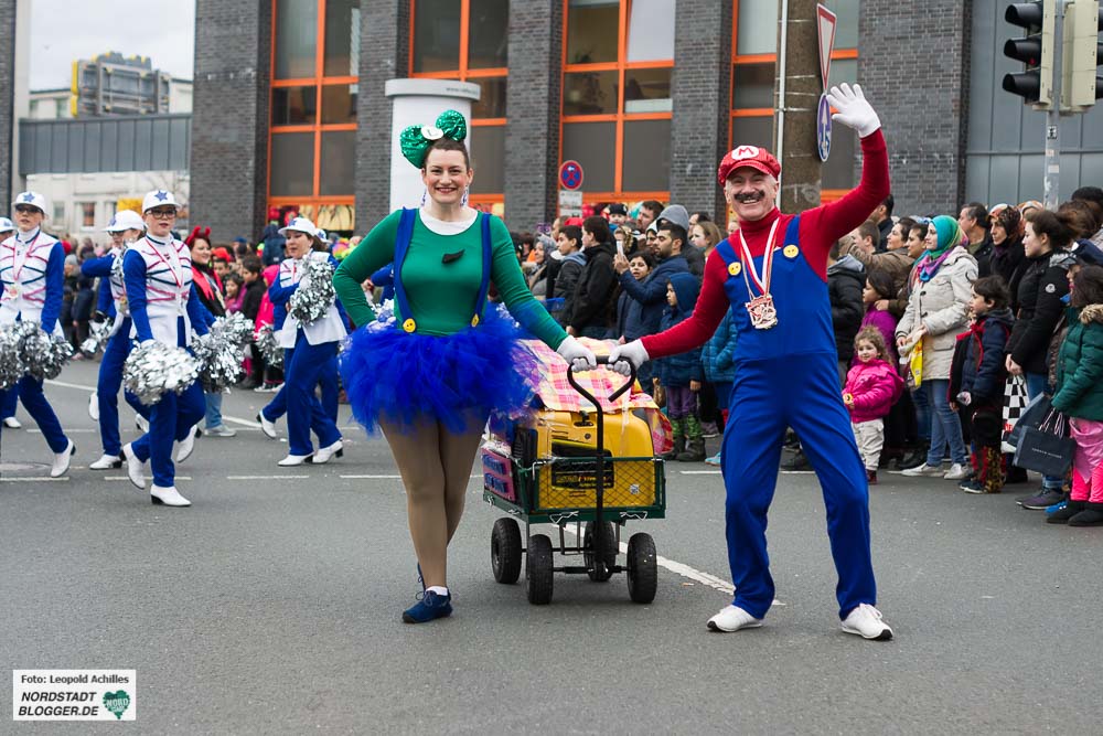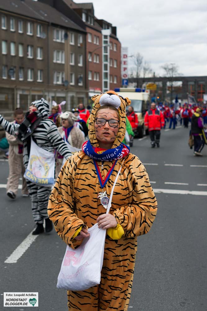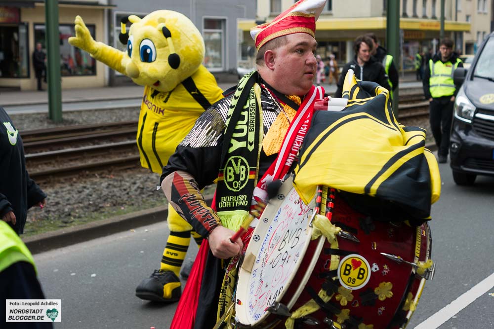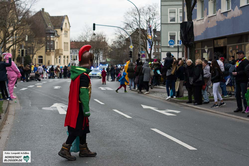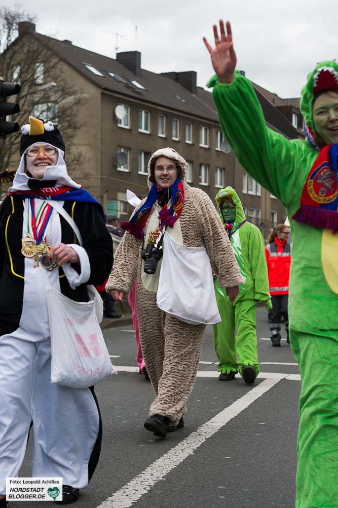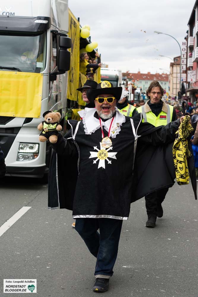 „Dortmund Helau!“: Schätzungsweise zwischen 100.000 und 150.000 Menschen verfolgten in Dortmund den Rosenmontagszug. 22 Wagen und 22 Musikgruppen machten sich am Nachmittag vom Festplatz Eberstraße in der Nordstadt auf den Weg in die City.