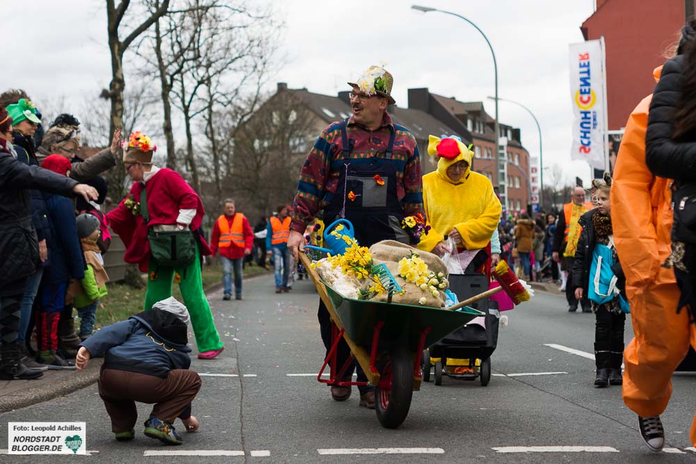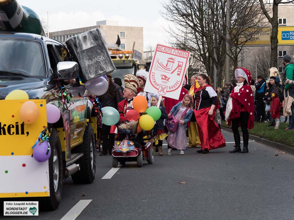Das Wetter spielte mit – selbst die Sonne ließ sich blicken. Nur Kamelle regnete auf die Närrinnen und Narren ein, die sich zahlreich an der Strecke versammelt hatten.