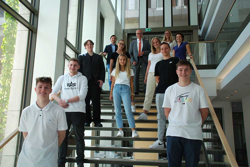 Statt des üblichen Gruppenfotos von allen 350 Azubis gemeinsam gibt es Corona-bedingt nur viele kleine Begrüßungsworkshops in der Bürgerhalle. Foto: Alex Völkel