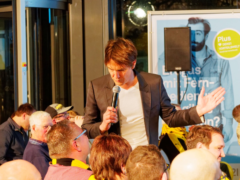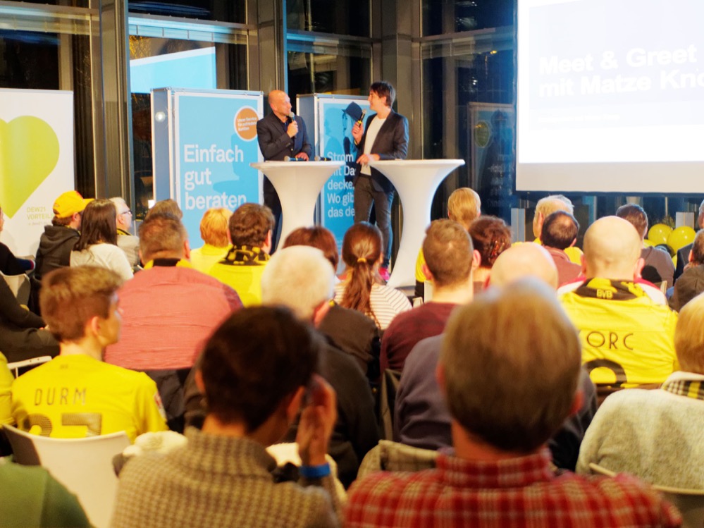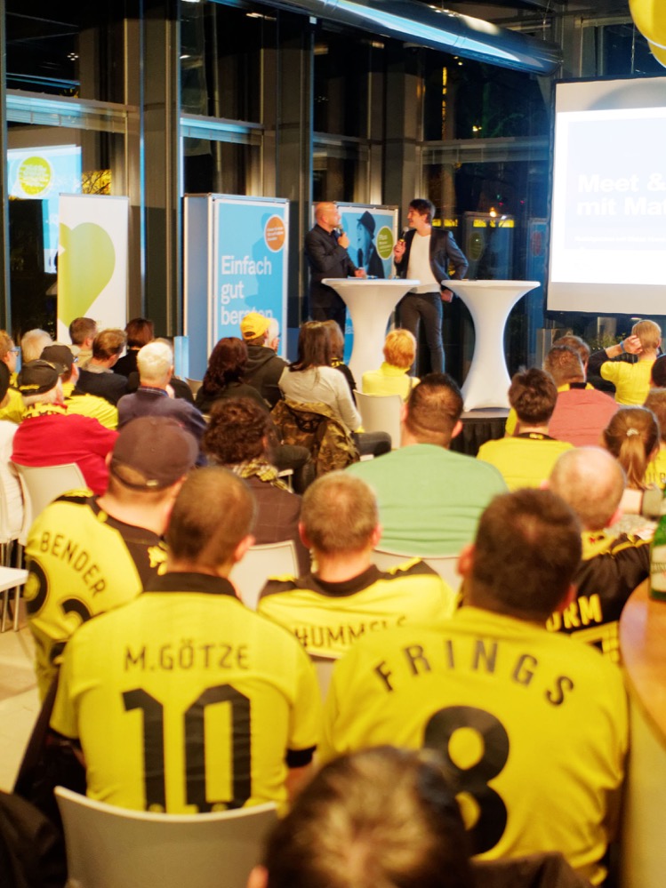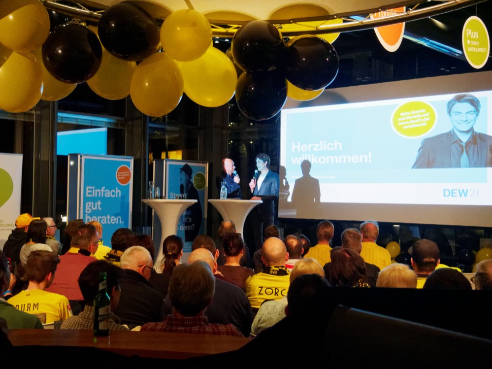 Comedy und Fußball scheinen nicht gut zusammen zu passen, ist doch des Deutschen liebstes Spiel eher eine bierernste Angelegenheit. Doch wenn es passt, dann hat meistens Matze Knop die Finger im Spiel. So geschehen auch am Mittwoch (8. März 2017), als DEW21 KundInnen und Interessierten anlässlich des Champions League-Spiels des BVB gegen Benfica Lissabon zum „Rudelgucken mit Matze“ einlud.
