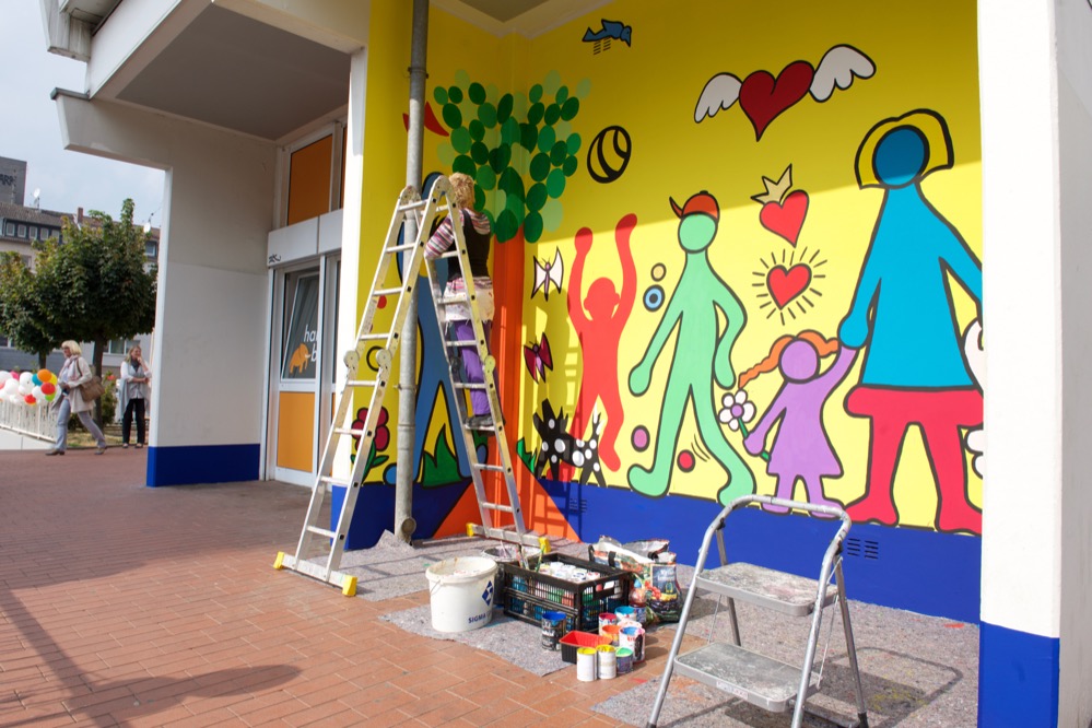 - Beim Gemeinschaftsprojekt an der Jägerstraße 2/Ecke Bornstraße kooperierten AWO, LEG Wohnen NRW GmbH, VHS, Familien-Projekt, dobeq und die Grundschule Kleine Kielstraße.