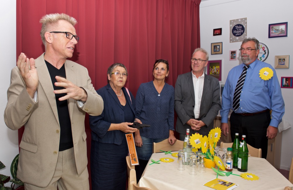 Ratsherr Friedhelm Sohn (SPD), Vorsitzender im Ausschuss für Kinder, Jugend und Familie, überreichte mit Klaus Burkholz den symbolischen Eröffnungsschlüssel an die Vorsitzende der Dortmunder AWO, Gerda Kieninger (SPD/MdL).