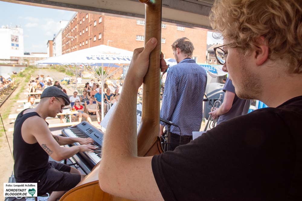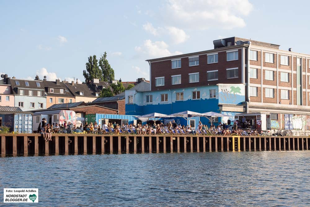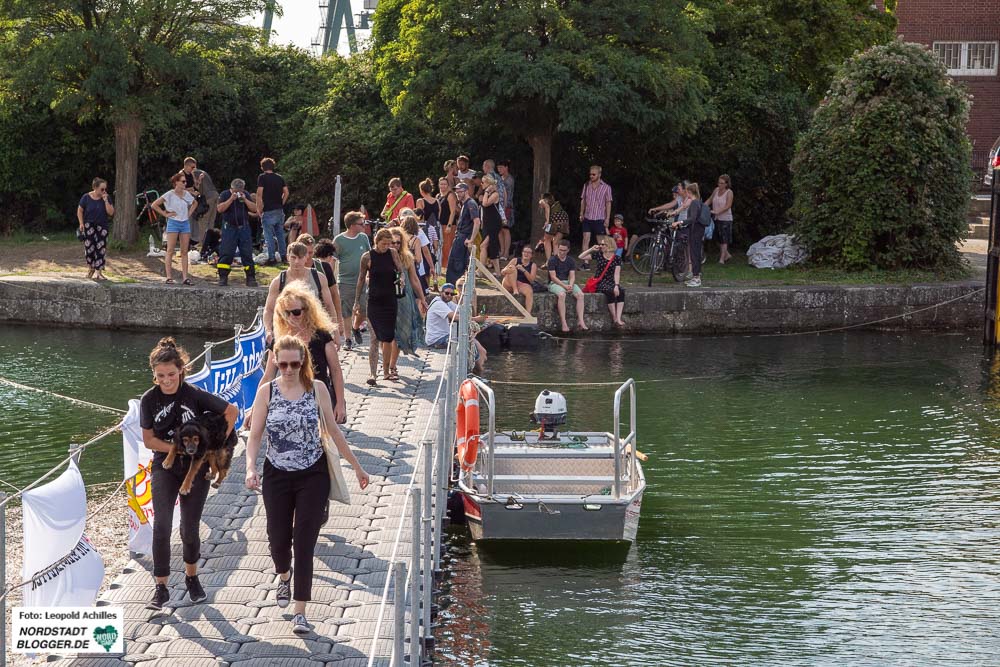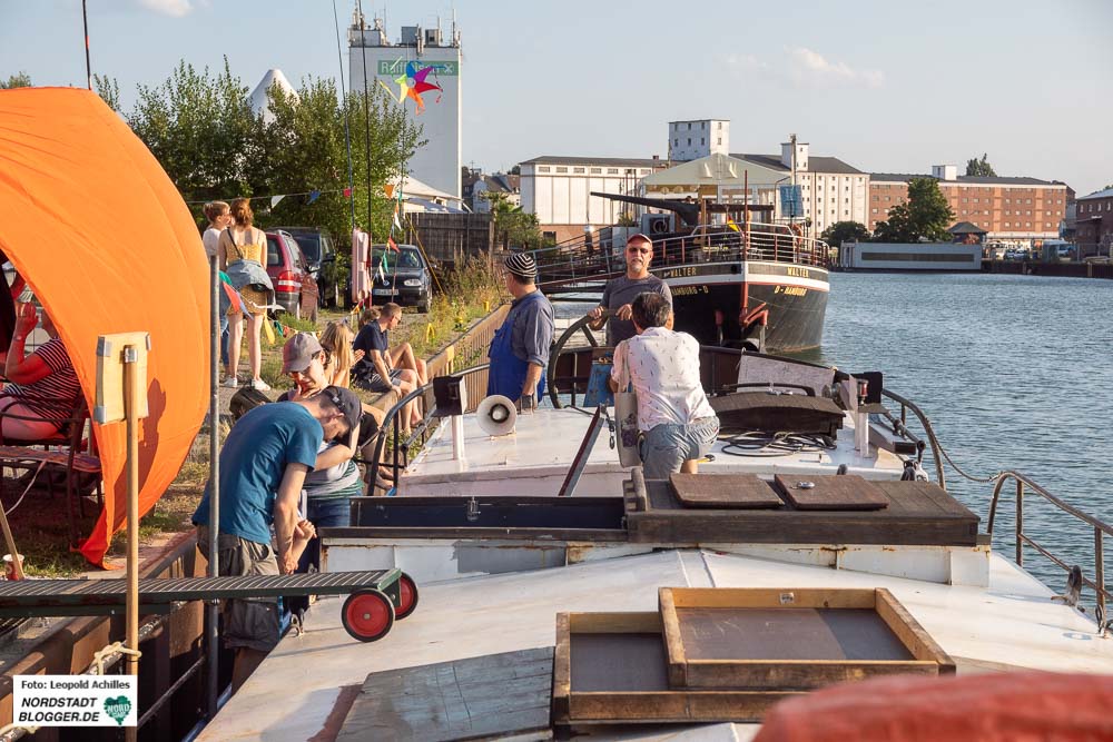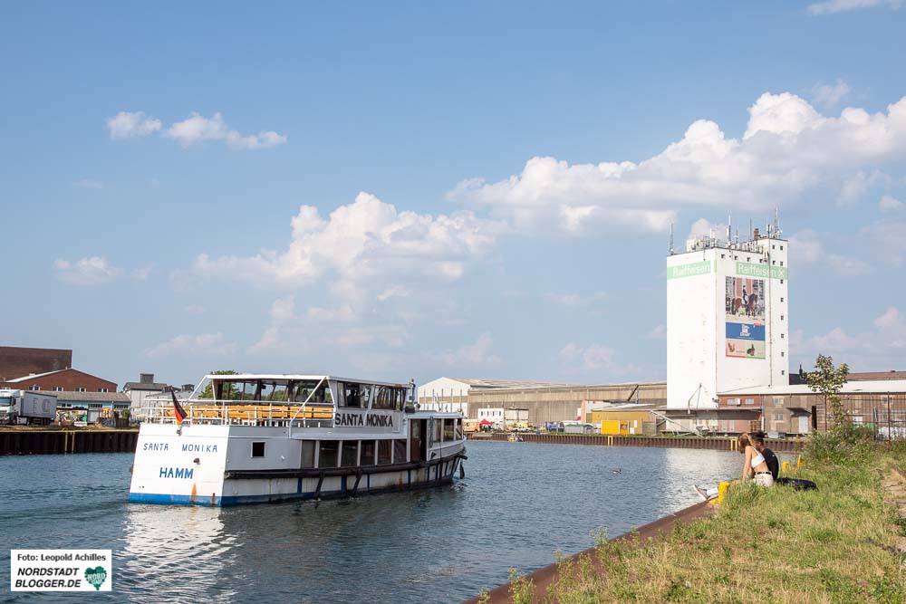 Der Hafenspaziergang fand bei bulliger Hitze und am Abend bei einsetzendem Regen statt. Fotos: Leopold Achilles