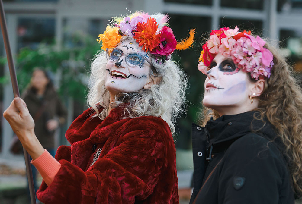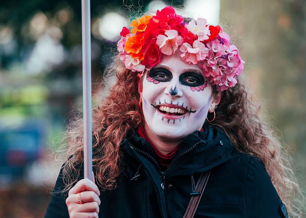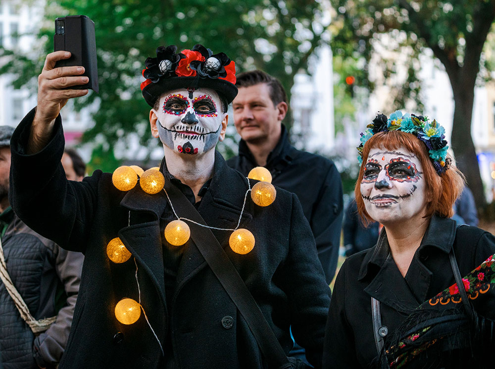 Während des Umzugs konnte man einen Eindruck von mexikanischer Trauerkultur gewinnen. Diese orientierte sich am christlichen Totengedenktag Allerheiligen – aber in der Umsetzung ist die mexikanische Variante überhaupt nicht still und dunkel, sondern farbenfroh und fröhlich.