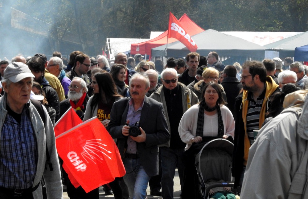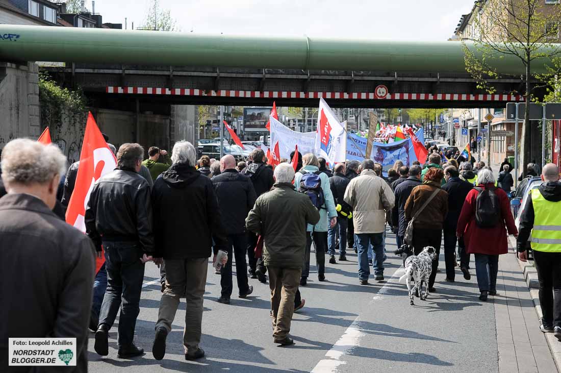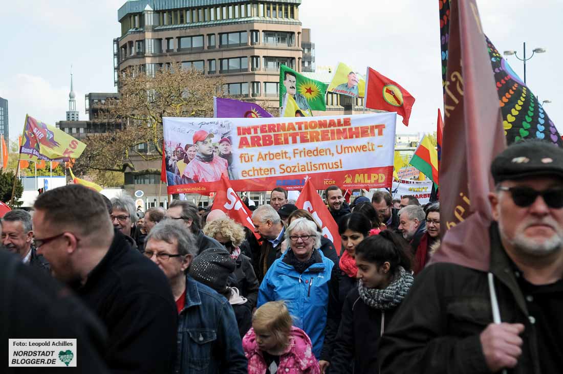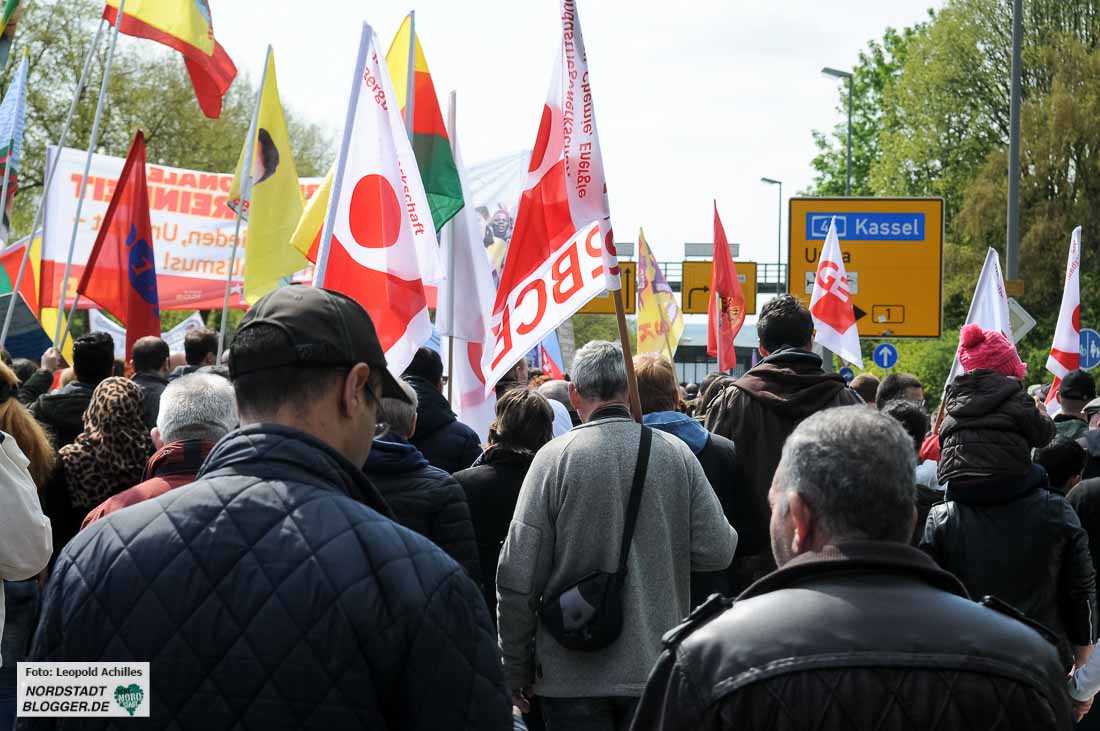 „Wären die vielen Rentner nicht dabei und die kurdischen Gruppen, könnte man den Zug vergessen“, meinte denn auch ein Gewerkschafter, der treu seit Jahrzehnten dabei ist.