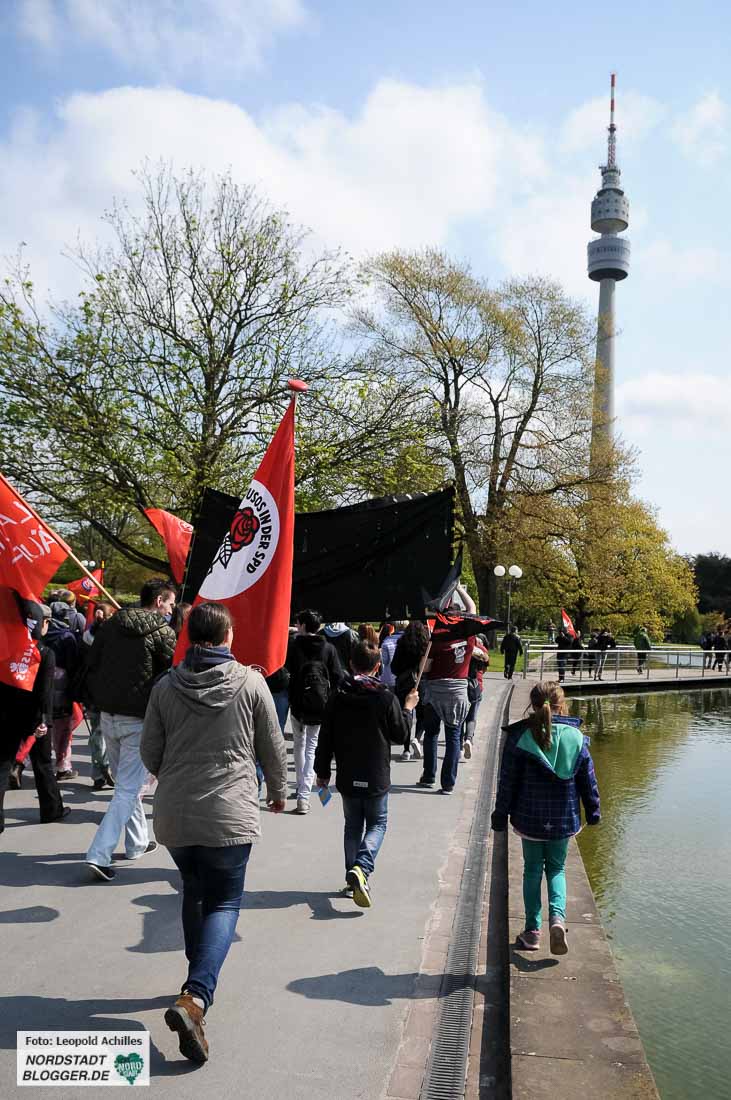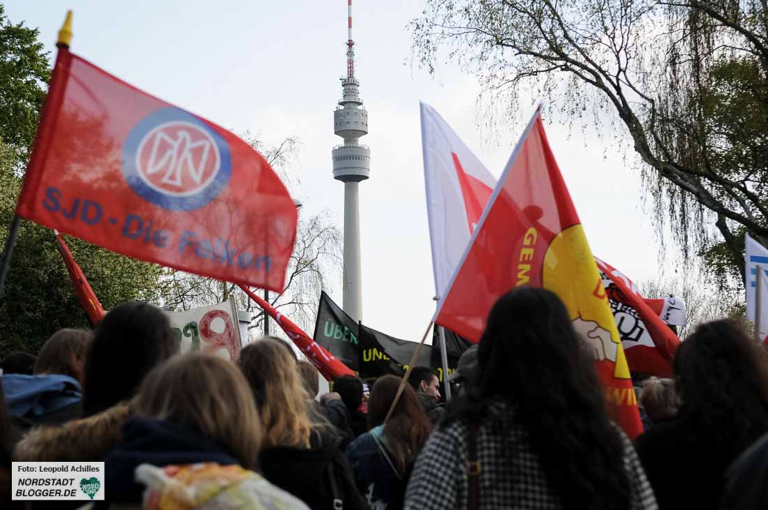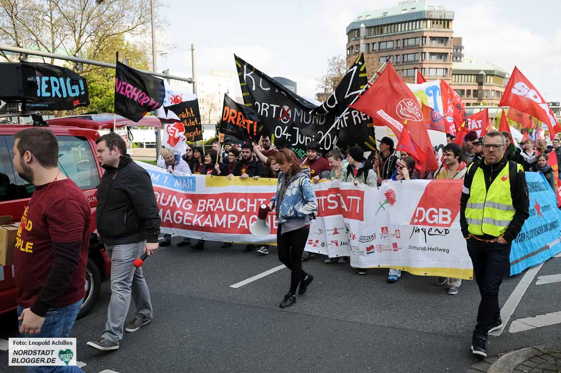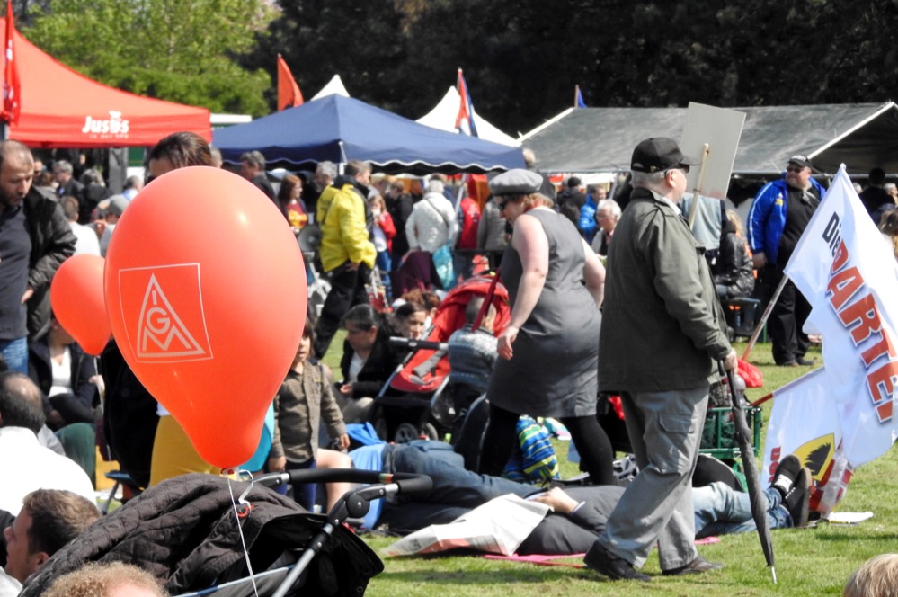„Proletarier aller Länder – vereinigt euch!“ Diesen Aufruf haben die TeilnehmerInnen der Mai-Kundgebungen in Dortmund wohl seit Jahren nicht vom Hauptredner der Veranstaltung gehört. André Hemmerle aus dem Vorstand der Nahrungsmittel-Gewerkschaft in Frankreich schloss mit diesem Satz seine Rede im Westfalenpark.