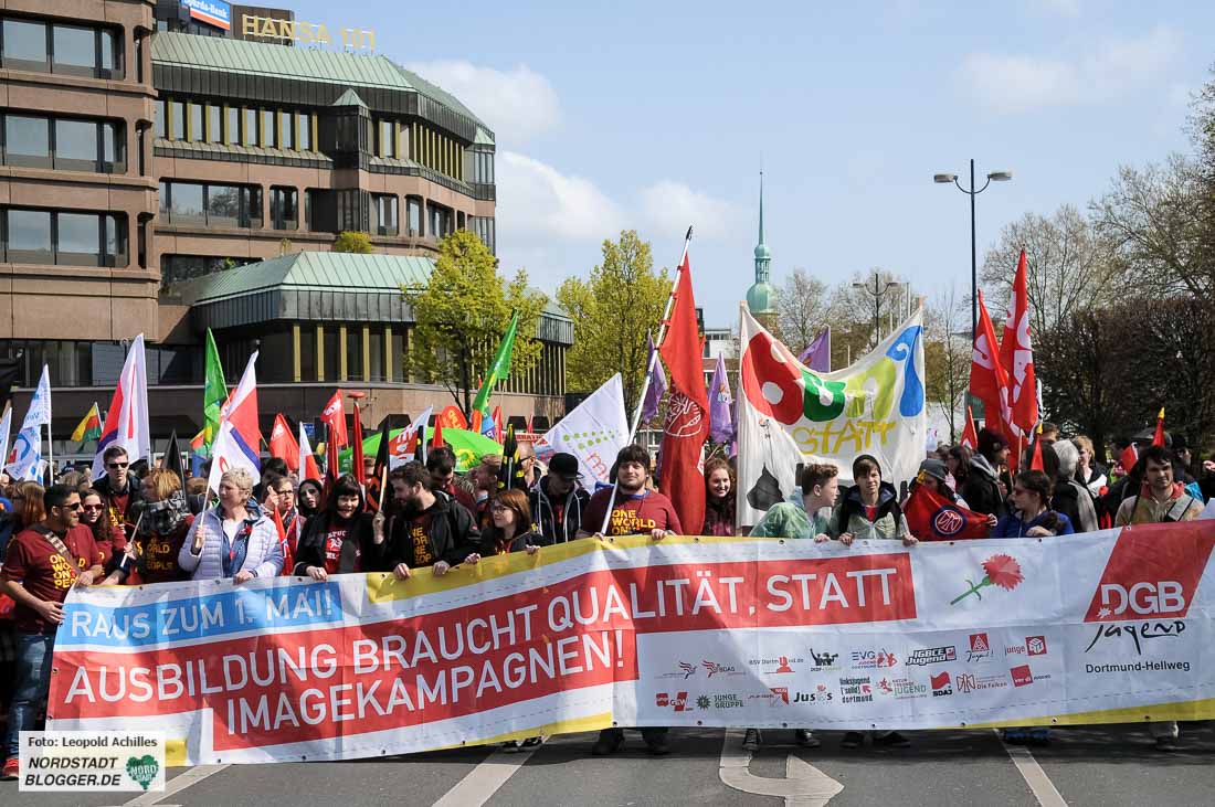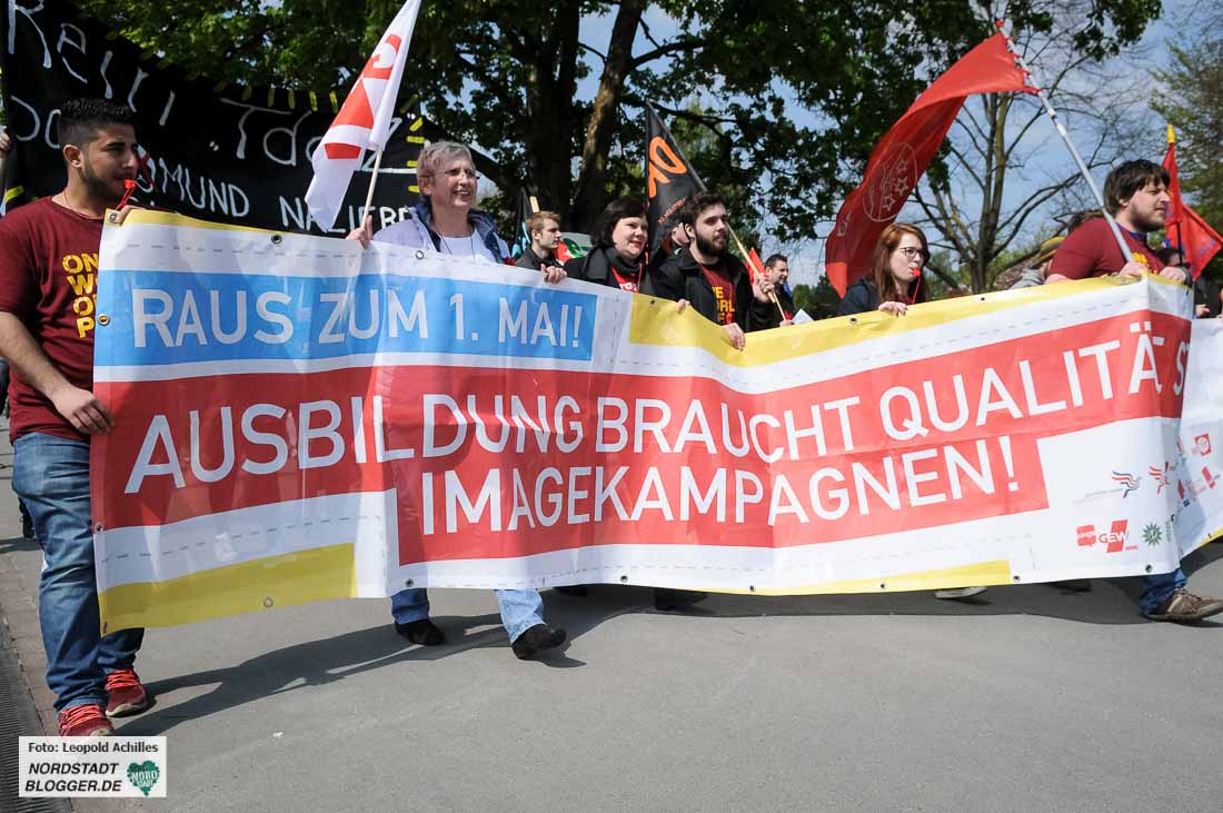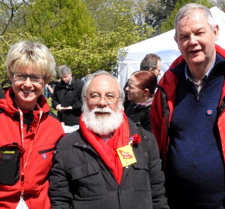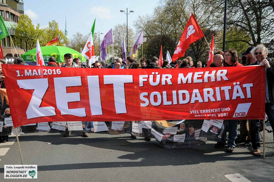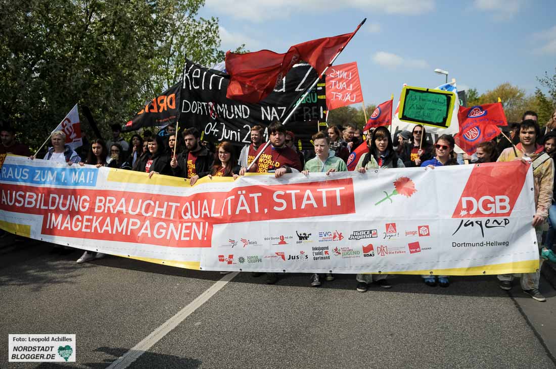 „Proletarier aller Länder – vereinigt euch!“ Diesen Aufruf haben die TeilnehmerInnen der Mai-Kundgebungen in Dortmund wohl seit Jahren nicht vom Hauptredner der Veranstaltung gehört. André Hemmerle aus dem Vorstand der Nahrungsmittel-Gewerkschaft in Frankreich schloss mit diesem Satz seine Rede im Westfalenpark.