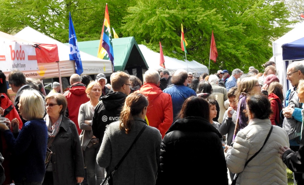 Nach der Rede wurde über Politik nur noch an den Ständen der vielen Gruppen und Parteien geredet