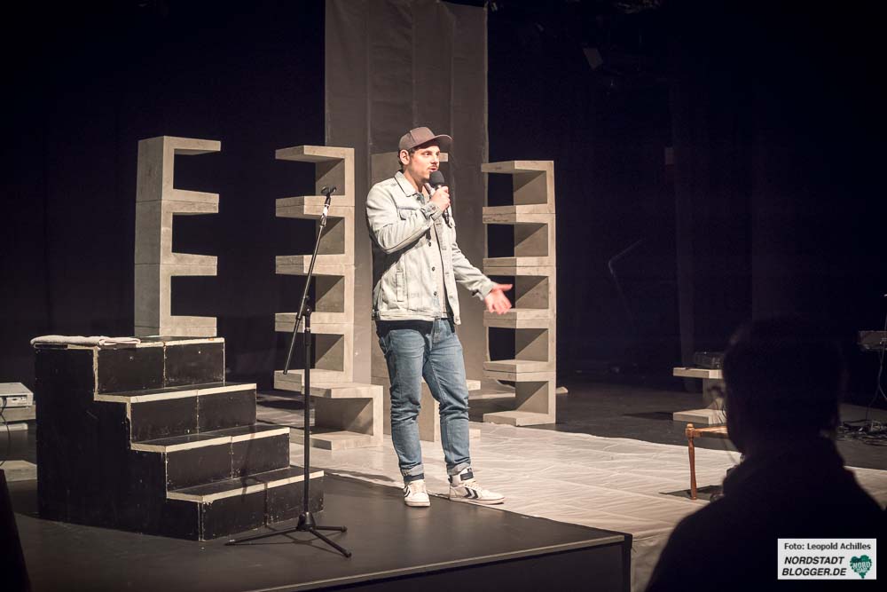 Jan Philipp Zymny machte nach einer kurzen Pause auf der Bühne weiter. Zymny ist zweifacher Deutscher Meister im Poetry Slam, sowie einer der bekanntesten und erfolgreichsten Slammer der Szene, Autor, Kabarettist und Stand Up-Komiker.