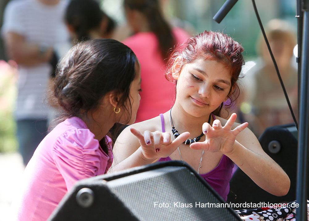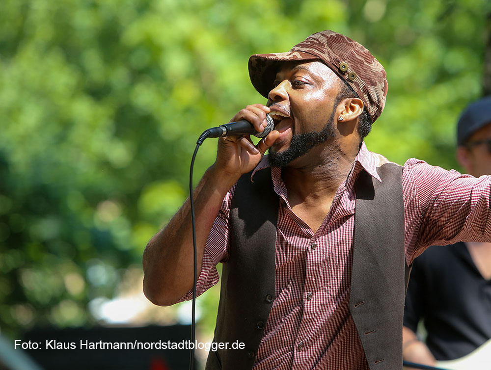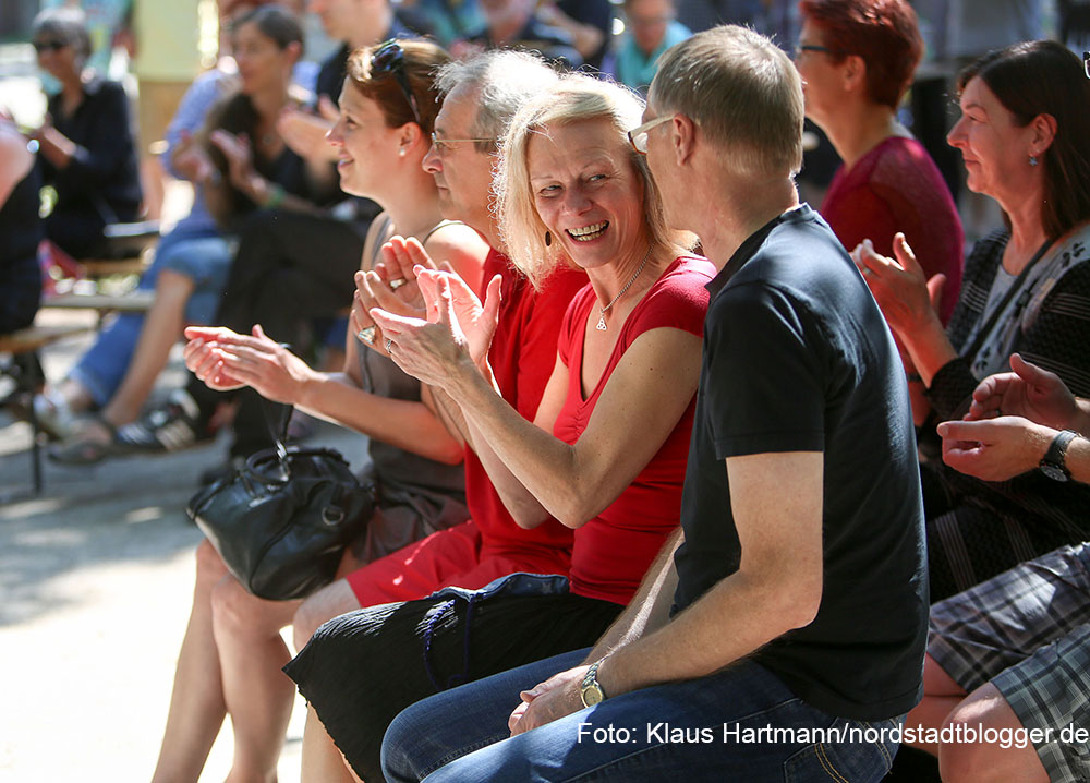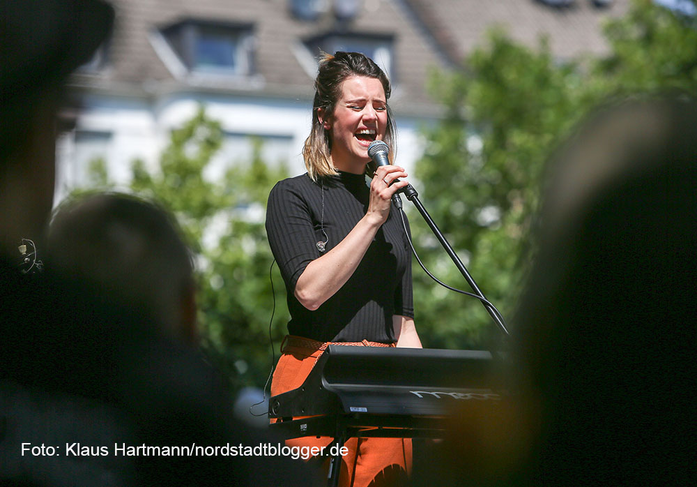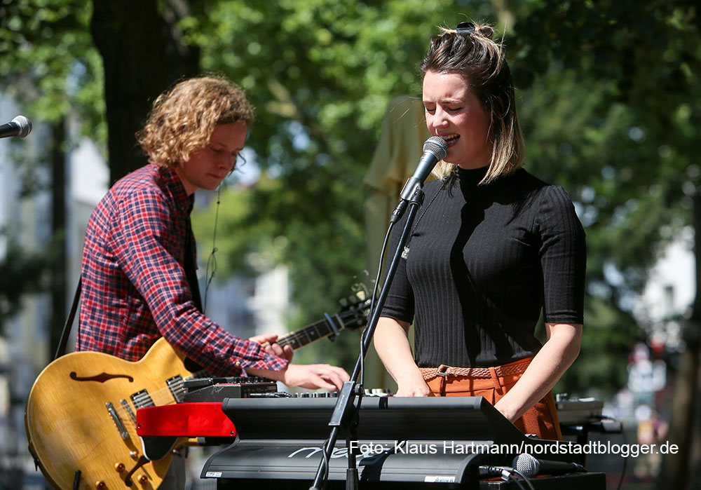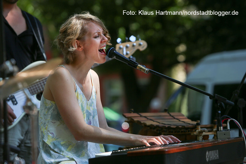 Blues Pop trifft Soul-Funk steht im Begleitheft. Dem Publikums gefiel es sehr, was das die vier Musiker plus Sängerin und Keyboarderin Lena, zur Mittagszeit auf dem Platz in der Nordstadt zelebrierten.