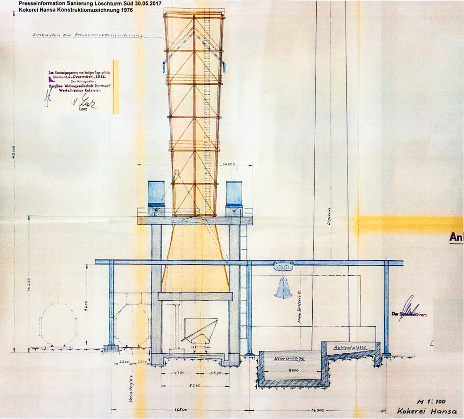 „Es war höchste Zeit, das denkmalgeschützte Bauwerk zu sanieren. Wir freuen uns sehr, dass wir mit Mitteln der Städtebauförderung Gelegenheit haben, das weithin sichtbare Wahrzeichen der Kokerei Hansa erhalten können“.