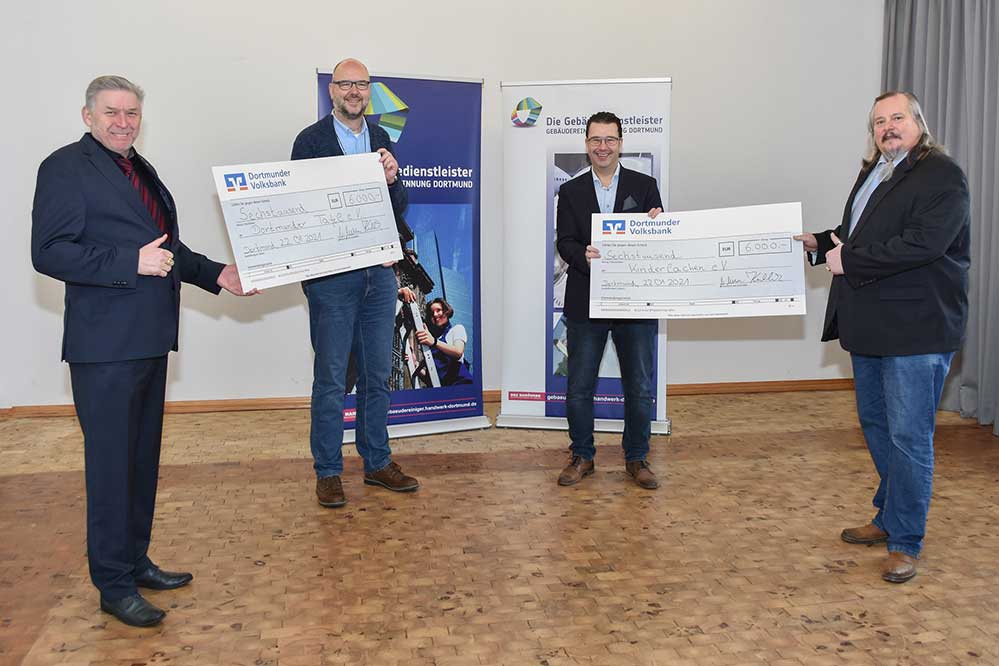 Täglich zwischen 500 und 600 wohnungslose Menschen betreut die Ökumenische Wohnungslosen-Initiative Gast-Haus statt Bank e.V. in Dortmund, für die deren erster Vorsitzender Heinrich Bettenhausen zur Scheckübergabe des Handwerks gekommen war. Zusammen mit drei befreundeten Vereinen betreibt die Initiative derzeit ein Hostel für Wohnungslose in Dortmund. „Wir verwenden das Geld für Lebensmittel, Hygieneartikel und andere Unterbringungskosten unserer Gäste“, erklärte Bettenhausen anlässlich der Spendenübergabe. „Unser oberstes Ziel ist es, unseren Gästen in einer Weise zu begegnen, die ihrer Würde entspricht und sie achtet.“ In der 1996 gegründeten Initiative, die sich aus Spenden finanziert, engagieren sich derzeit über 250 ehrenamtliche Mitarbeiter. Gast-Haus statt Bank e.V. bietet einen Tagestreff mit gastlichen Räumen, Frühstück, Wasch- und Wäschegelegenheit, Hilfs- und Beratungsangebote, seelsorgerische und medizinische Betreuung sowie Gesprächskreise, Gottesdienste und interessante Kulturabende.