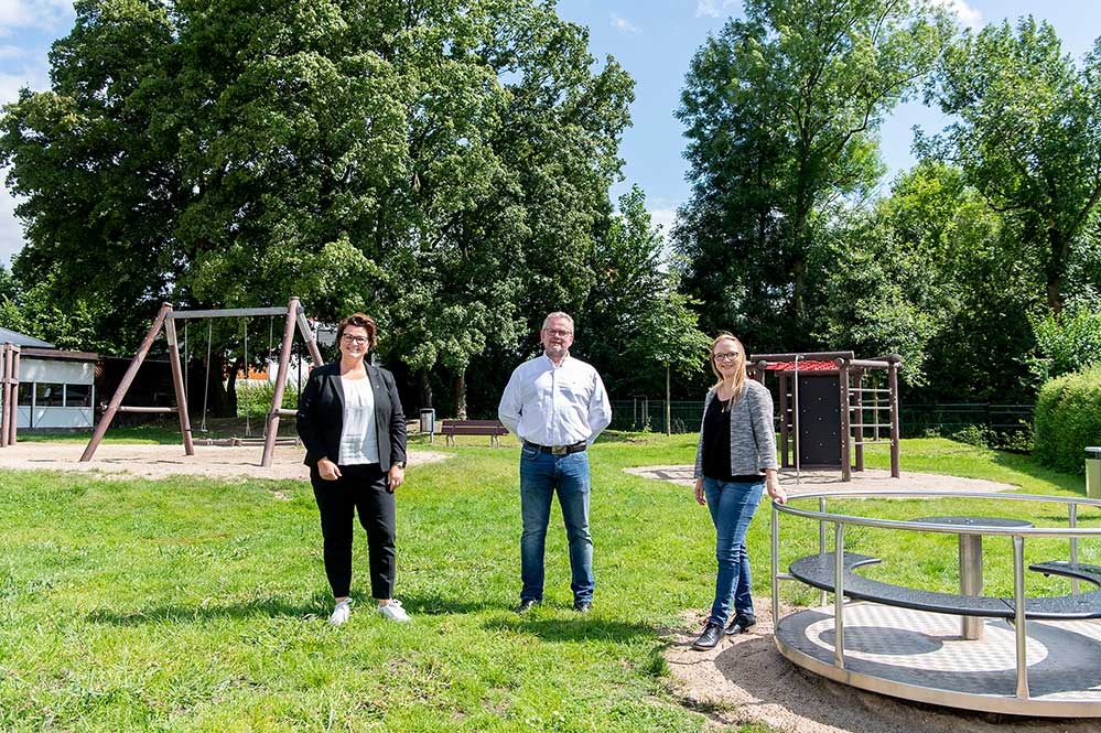 Bildzeile: v.l. Frank Mertin (Sparkasse/Leiter Kommunalkunden), Jessica Welk-Meißner (Meisterin, Hauptfriedhof), Ralf Dallmann (Betriebsleiter Friedhöfe Dortmund).