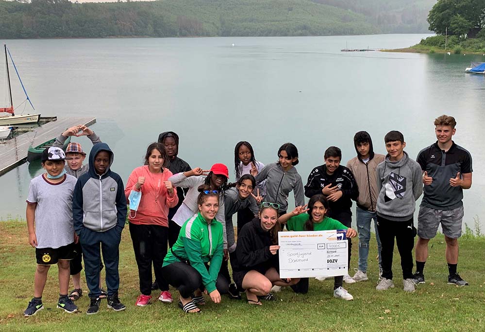 „Das Projekt ist ein Beispiel dafür, was wir gemeinsam tun können, um ein gutes Zusammenleben zu erreichen. Deswegen unterstützt die Gemeinwohl-Stiftung der Sparkasse Dortmund den VfL Hörde gern bei seinem Engagement.“ so Sabine Bartz bei der Übergabe des Schecks an Lukas Lakoma, verantwortlich für das Projekt und Trainer beim VfL Hörde.