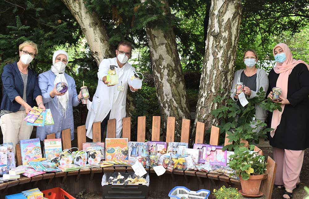 Frauengruppe der Gemeinde die jungen Patient:innen im Klinikum. Angestoßen