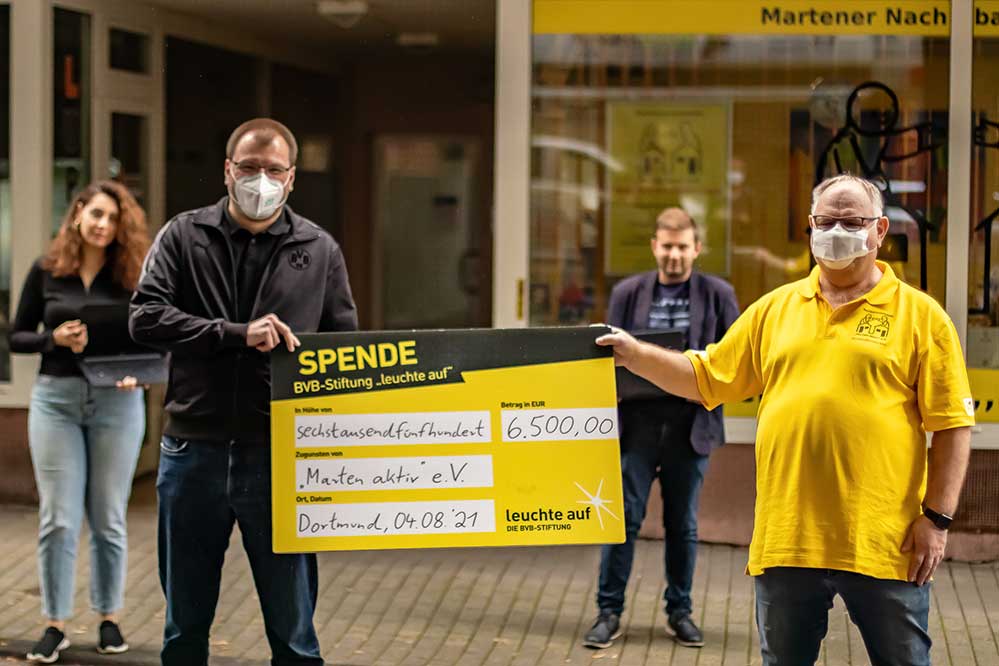 Bildzeile: vorne links, Thomas Klein (BVB Stiftung), rechts Axel Wolff (Marten aktiv e.V.)