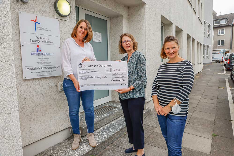 Der Verein SUNRISE e. V. freute sich Ende Juni über die unverhoffte Spende von 1.000 Euro. Jasemine Klein bedankte sich bei der AWO-Vorsitzenden Anja Butschkau und bei der Künstlerin Susanne Hildebrandt, die für die Spende verantwortlich waren. Sunrise ist eine Jugendbildungs- und Beratungseinrichtung für bisexuelle, pansexuelle und asexuelle, trans*, inter*, non-binar und queere (LSBPATINQ) junge Menschen bis 23 Jahre in Dortmund. Sunrise ergänzt die bestehenden Jugendfreizeiteinrichtungen um ein spezielles Angebot: Im geschützten Raum können Jugendliche ihre Freizeit verbringen, Freund*innenschaften schließen und finden dort ein Klima vor, in dem ihr „Anderssein“ wertschätzend und positiv aufgenommen wird. In Anspielung auf den Fußball und Regenbogenfarben sagte Anja Butschkau: „Wir positionieren uns gerne und geben Menschenfeindlichkeit keine Chance!“