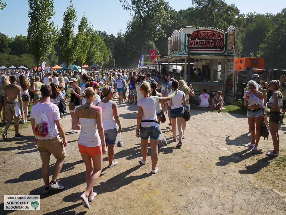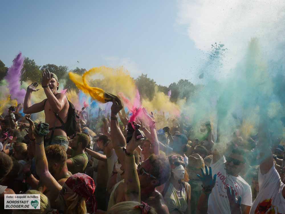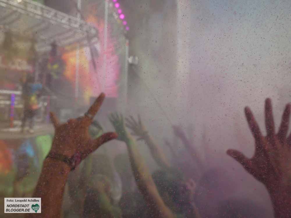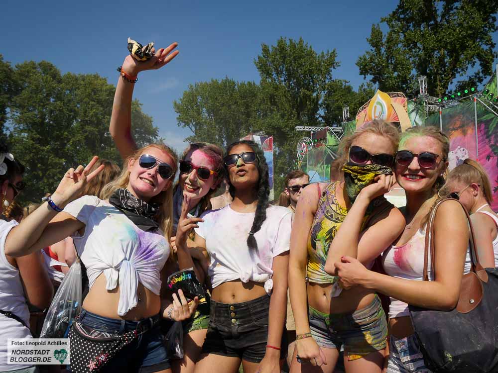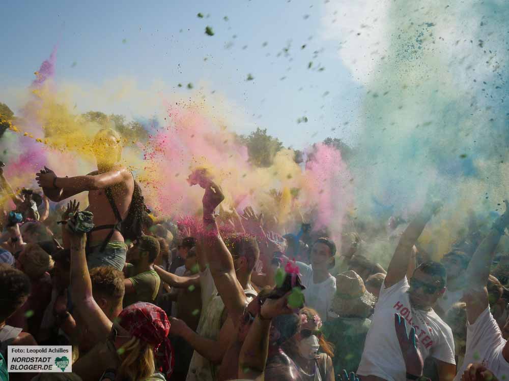 Von 12 bis 22 Uhr wurde am Samstag im Fredenbaumpark, genaugenommen auf der großen Festwiese zu lauter elektronischer Musik getanz und mit buntem Puder um sich geworfen. Ein fröhliches, farbenfrohes und sehr heißes Fest.
