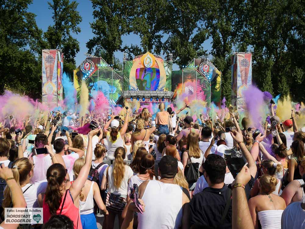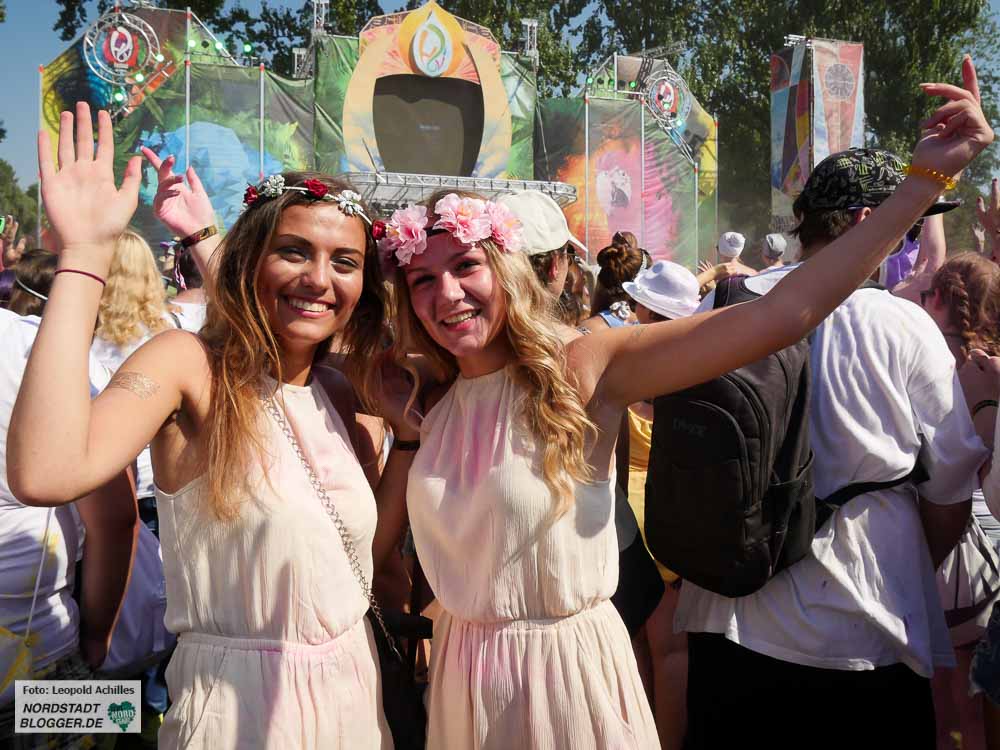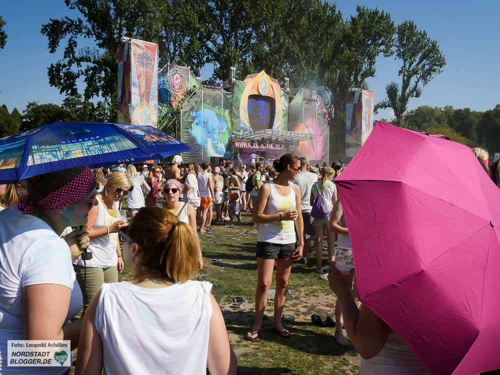 Trotz der über 30 Grad in der Sonne waren mehrere tausend Menschen auf das Festival geströmt um bei elektronischer Musik und viel Farbe gemeinsam zu feiern.