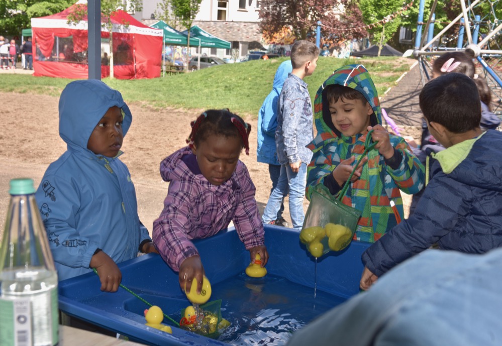 In der Sparte Bewegung und Aktion boten ein Kletterturm, die Hüpfburg und Basketball sowie Wikinger-Schach, Seilspringen, Entenangeln und Schätze sieben, Pedalofahren und Fußball spielen ausreichend Möglichkeiten zum Toben und Testen. Geflügelwürstchen, Säfte, Kuchen und ein Eiswagen   sorgten für die nötige Energiezufuhr.