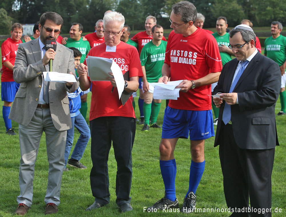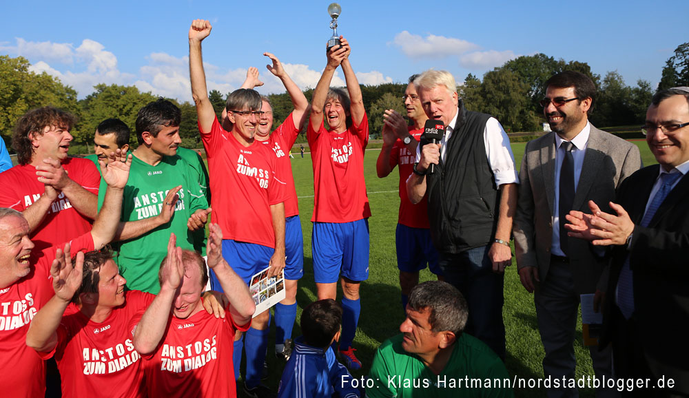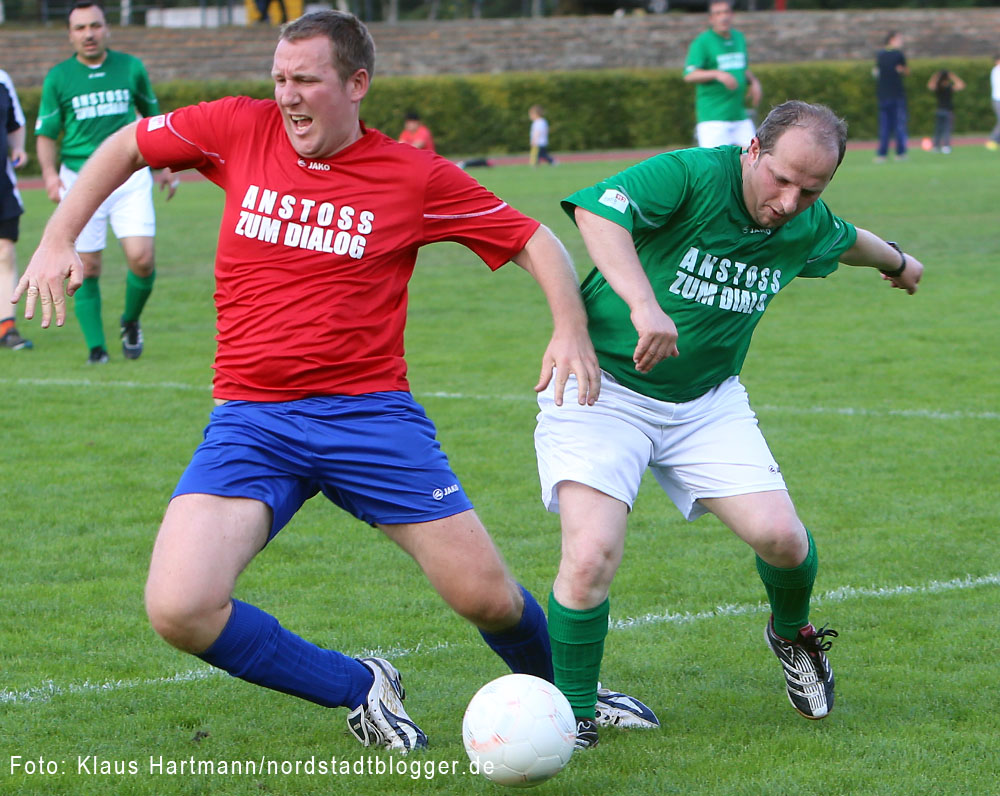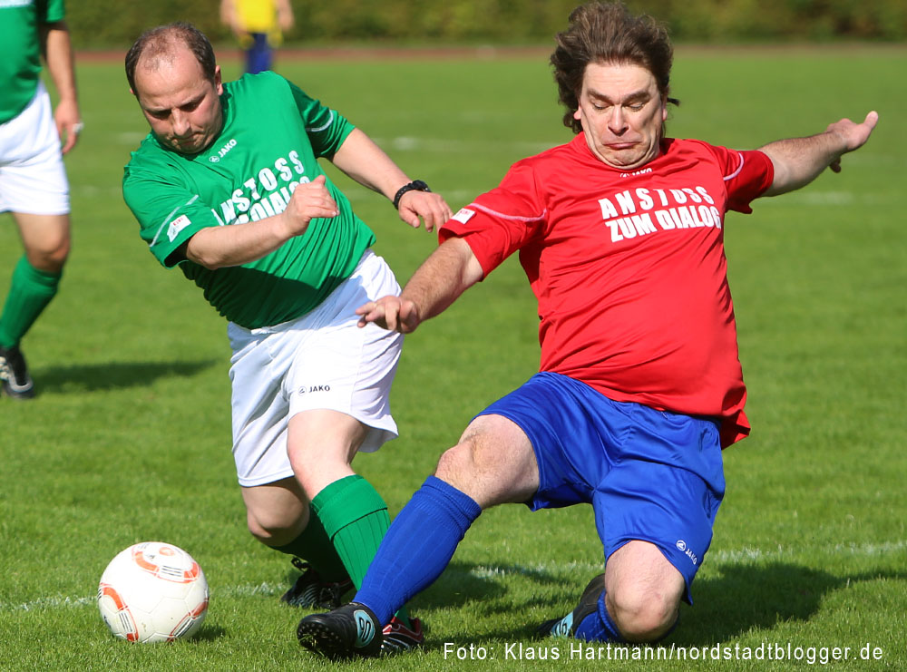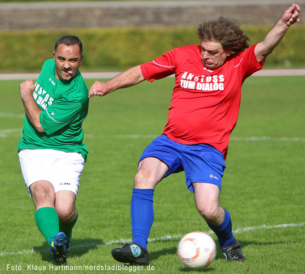Fußballturnier der Religionen, Anstoß zum Dialog, im Hoeschpark. Spiel Pfarrer gegen Imame endet 4 : 2