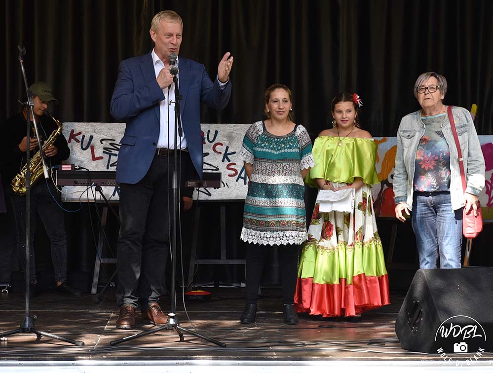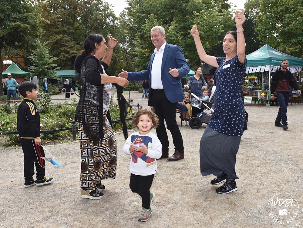 Anders als in den Vorjahren wurde das „Djelem Djelem“-Roma-Kulturfestival 2019 mit dem großen Familienfest auf dem Nordmarkt eröffnet. Nachdem AWO-Vorsitzende Gerda Kieninger und Kulturdezernent Jörg Stüdemann die zahlreichen BesucherInnen begrüßt hatten, stürzten sie sich selber ins Vergnügen und ließen sich von der Gastfreundschaft und Lebensfreude der Roma-Kultur überzeugen.