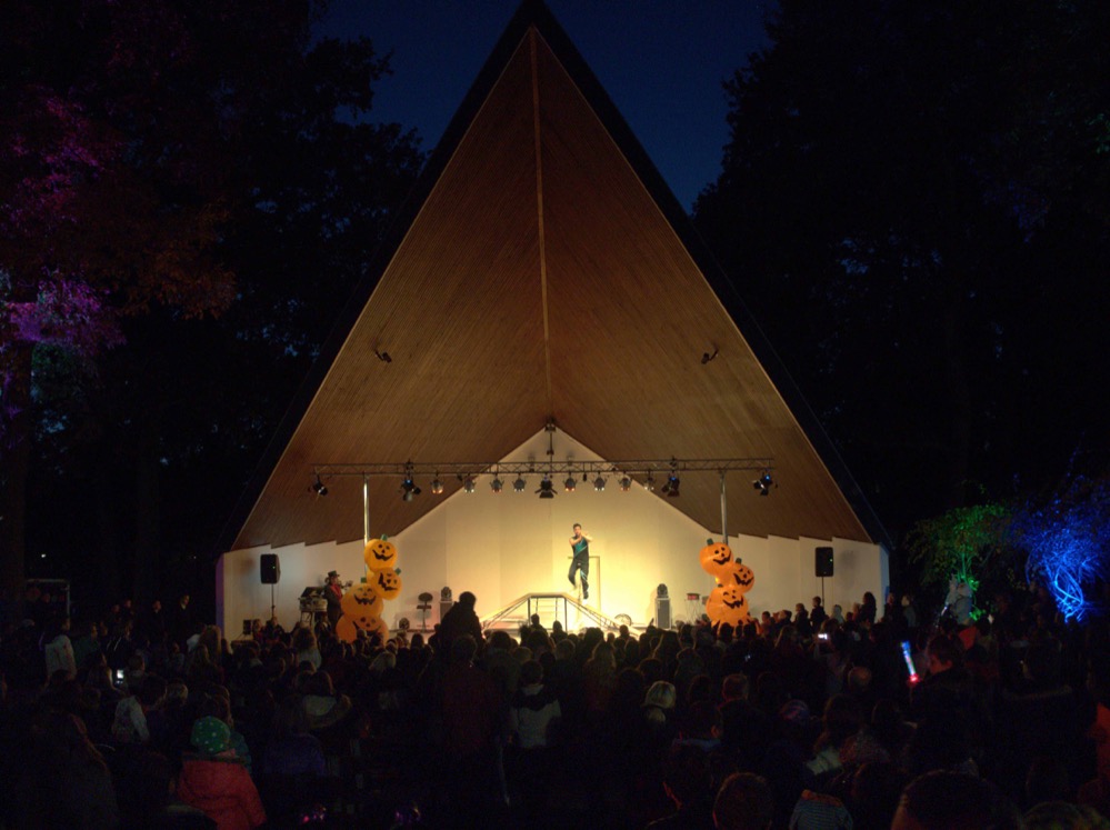 Zudem gab es für alle Gruselgestalten einen Umzug des Freundeskreises Fredenbaum. Gemeinsam ging es vom Big Tipi bis zum Musikpavillion im Park, wo die Gäste eine Zauber- und Feuershow mit Markus Magnus und Christian Meyer erwartete.