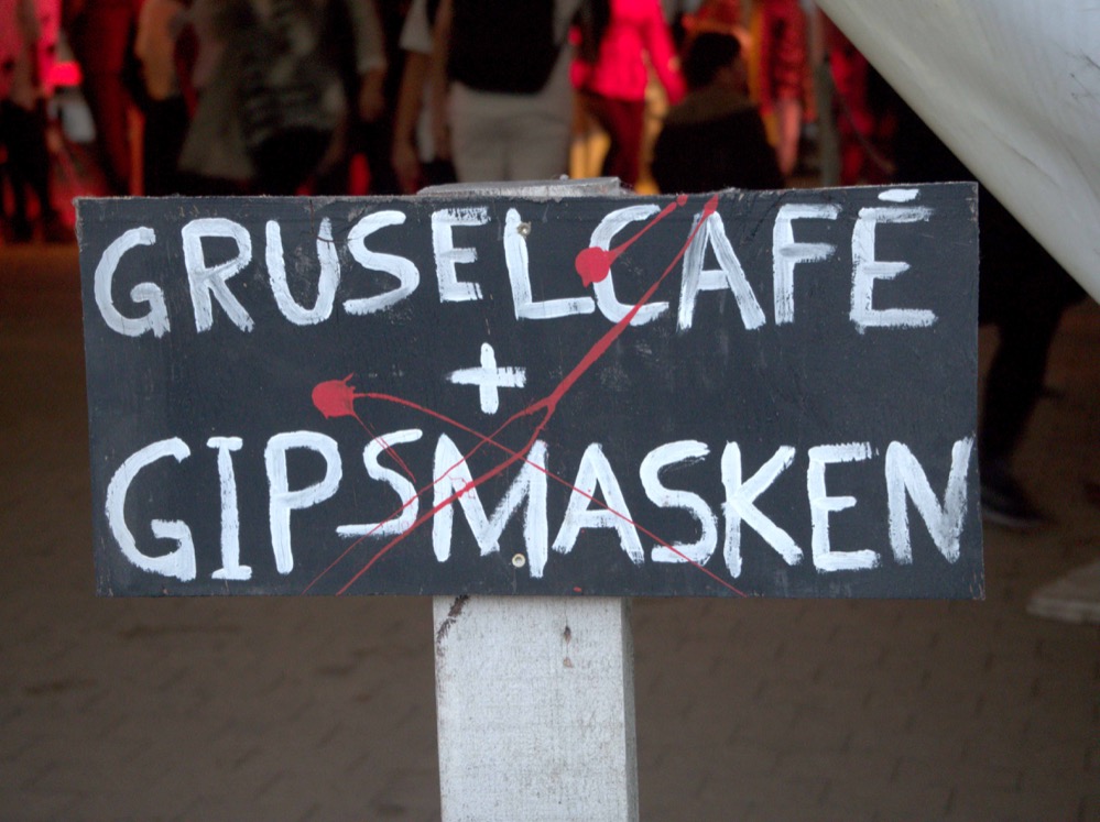Bei Stockbrot an der Feuerstelle, selbstgekochter Kürbissuppe aus der Hexenküche und Waffeln aus dem Gruselcafé konnten die Besucherinnen und Besucher auftanken. Hauptattraktionen waren wie immer die selbstgebaute Geisterbahn, der Ekelparcours und die unheimliche Wahrsagerin.