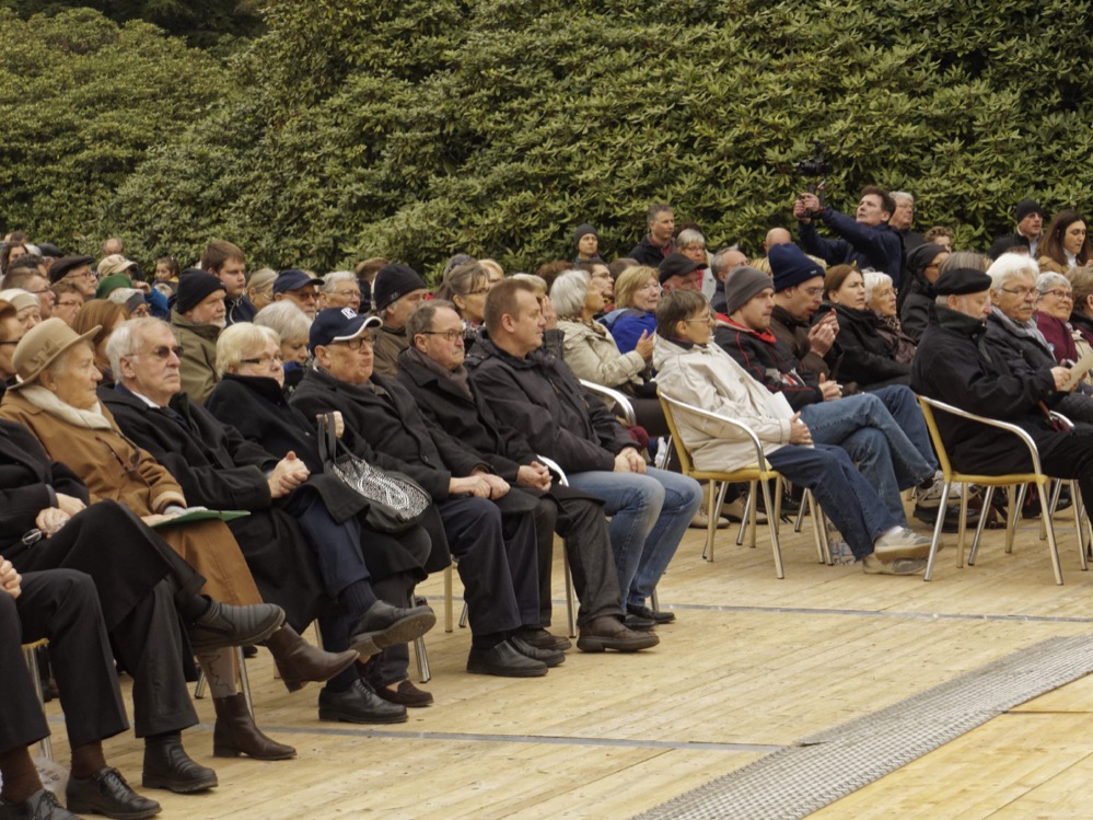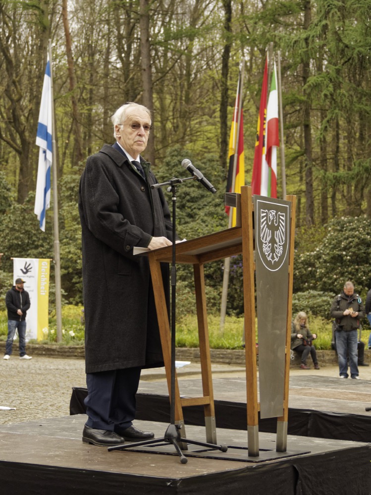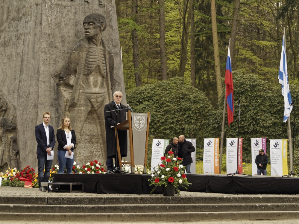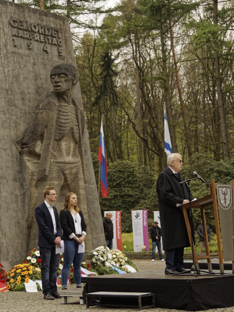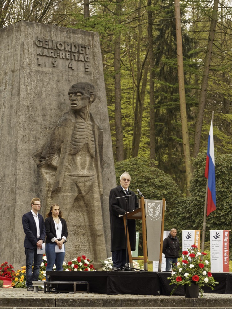 Zuvor hatte Bürgermeister Manfred Sauer in seiner Begrüßungsansprache gesagt, dass die Vergangenheit niemals Geschichte werden dürfe, das Gedenken an die ermordeten Zwangsarbeiter aus Frankreich und Belgien, aus den Niederlanden und Jugoslawien, aus Polen und der Sowjetunion, an die ermordeten Widerstandskämpfer lebendig bleiben müsse.