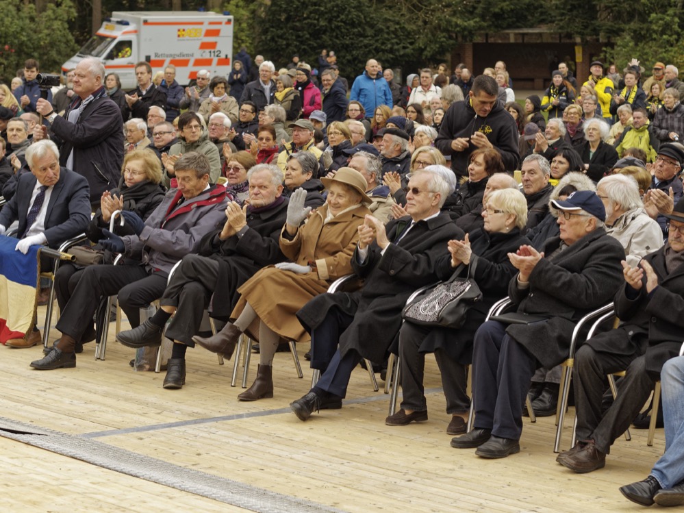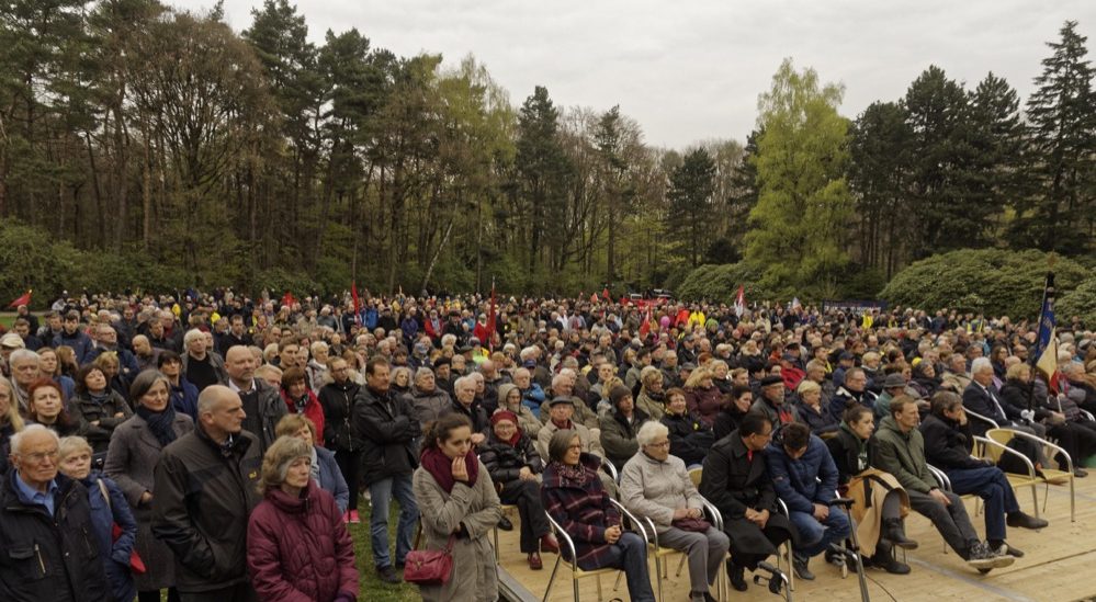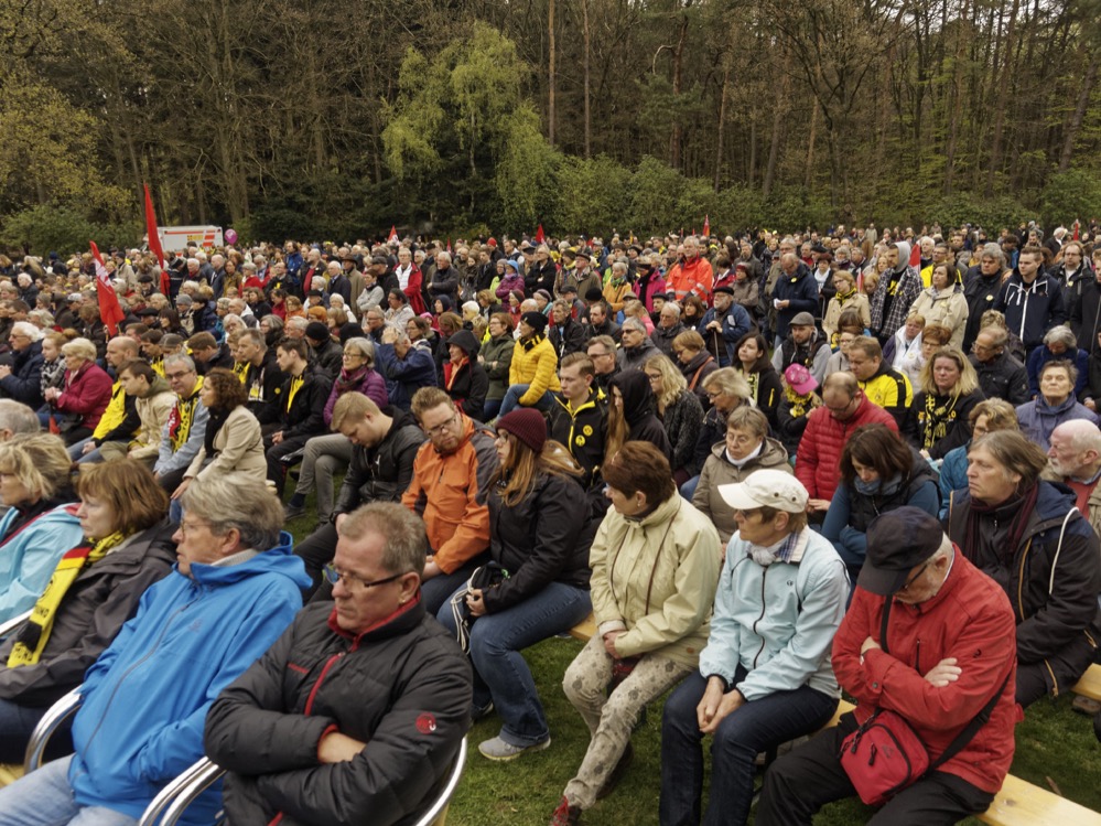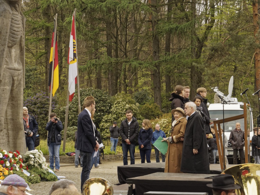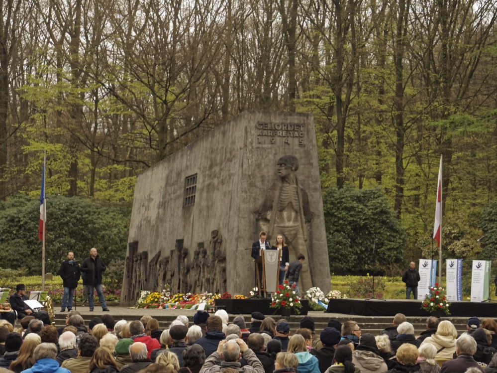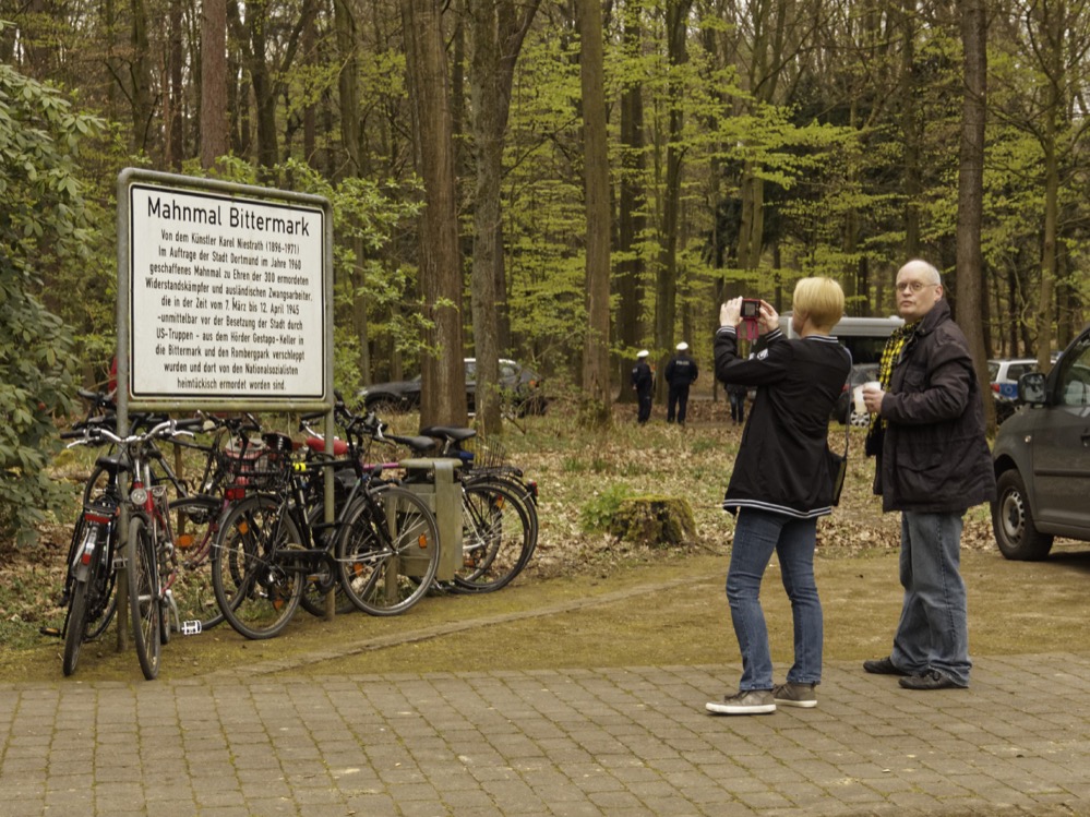 72 Jahre nach der Ermordung von fast 300 Widerstandskämpfern in der Bittermark und im Rombergpark kommen wie jedes Jahr hunderte von Menschen am Karfreitag zur Gedenkfeier ans Mahnmal mitten im Wald. Diesen Freitag war es nicht anders. Unter ihnen sind stets Angehörige der Opfer, wie Nicole Godard, stellvertretende Vorsitzende des Verbands der Zwangs- und Arbeitsdeportierten, die ihre Rede auf Deutsch hielt. „Sie erweisen uns eine große Ehre, indem Sie uns an der Feier teilnehmen lassen.“