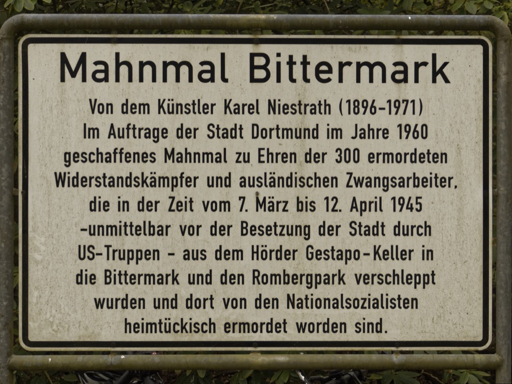 Zum geschichtlichen Hintergrund: Obwohl die amerikanischen Truppen bereits die Stadt besetzten, erschoss die Hörder Gestapo im Jahr 1945 in der Bittermark 280 Menschen. Dieses Geschehnis wird diskutiert im Philosophie-Salon der Volkshochschule, Hansastraße 2-4, von 11 bis 13.15 Uhr.
