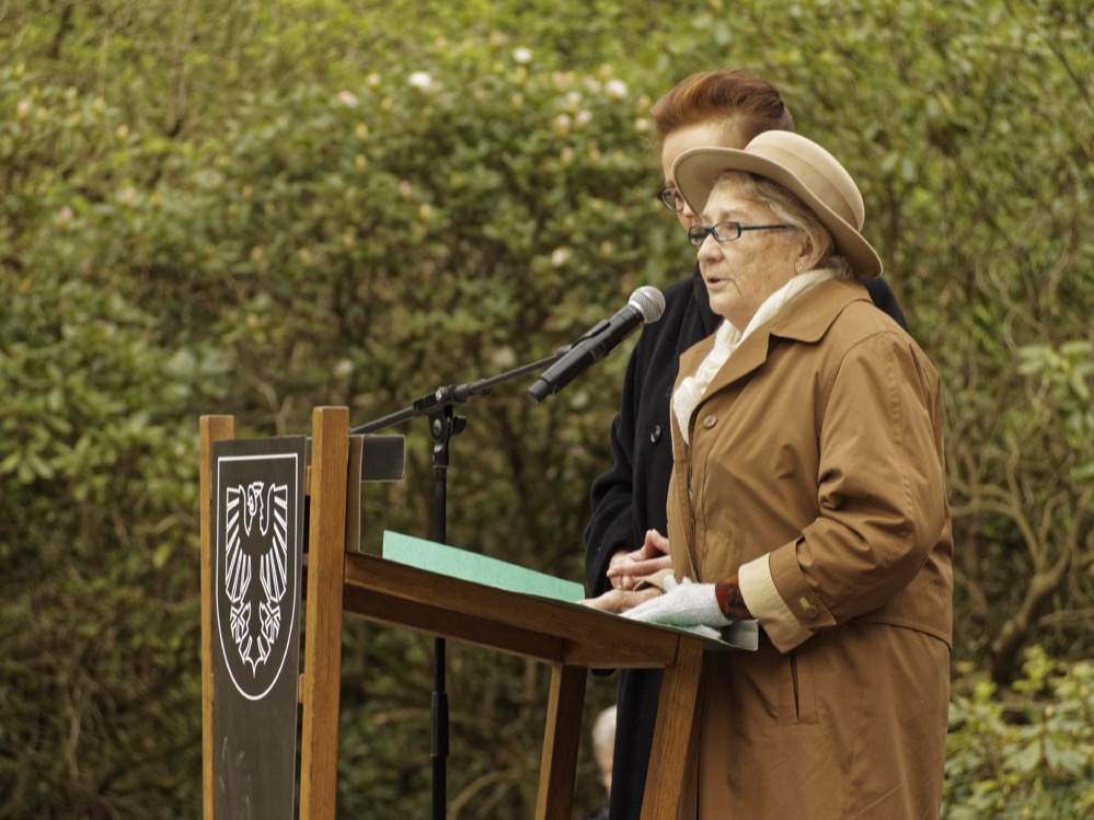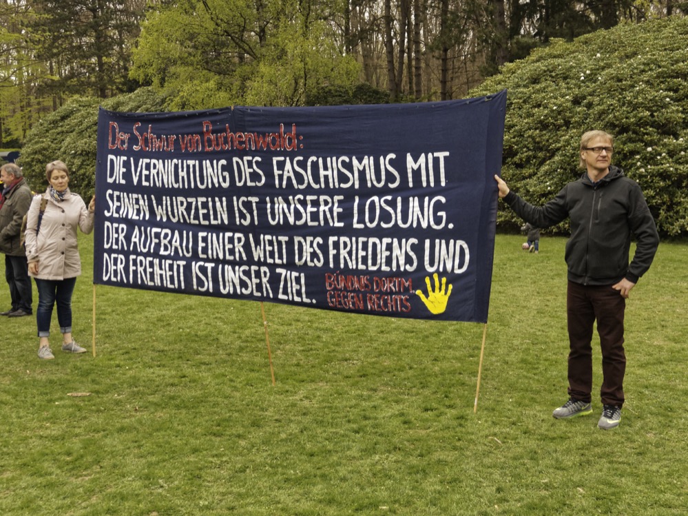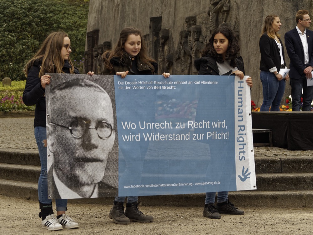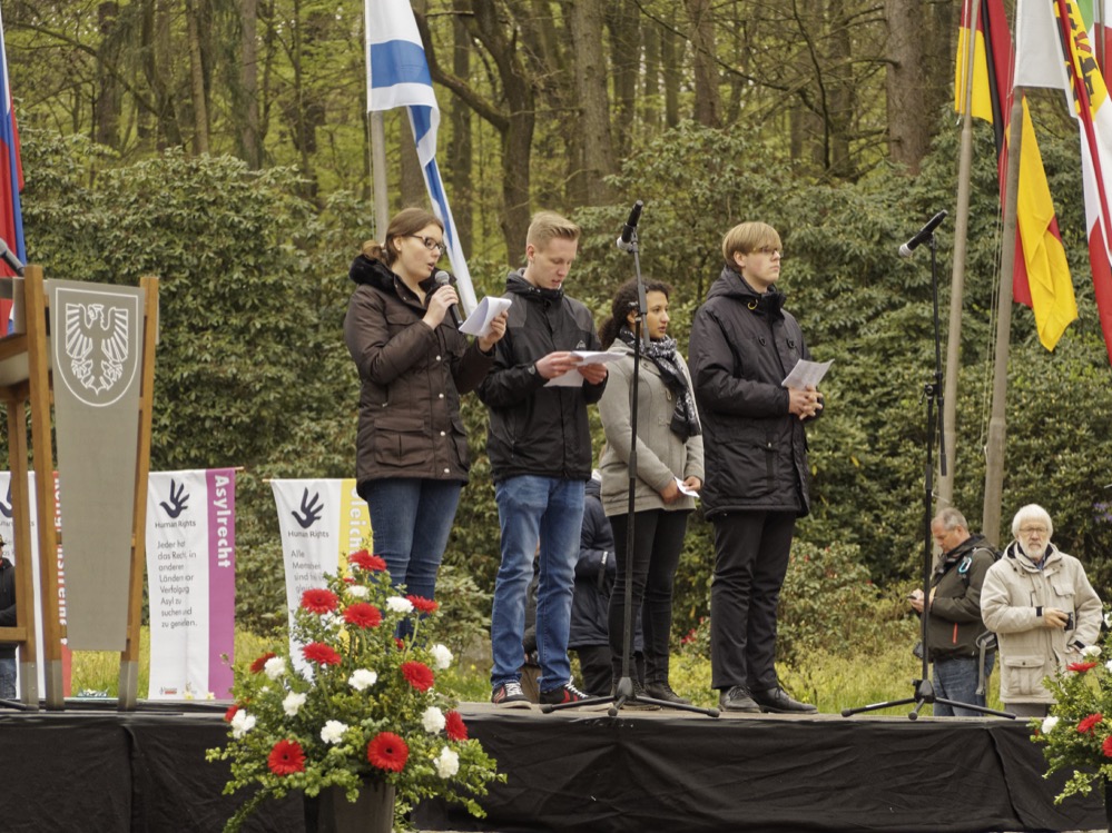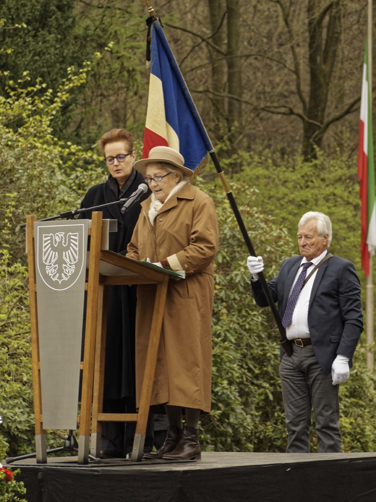 Anerkennend erwähnt sie das Engagement der Dortmunder Jugendlichen und jungen Erwachsenen, die seit Jahren als BotschafterInnen der Erinnerung die Feier mitgestalten. „Wir älteren schenken Ihnen Vertrauen.“ Und ein wenig stolz können die OrganisatorInnen der Gedenkfeier, die Stadt Dortmund und das Internationale Rombergpark-Komitee nach diesen Satz sein: „In Ihrer Mitte fühlen wir uns ein bisschen zuhause.“