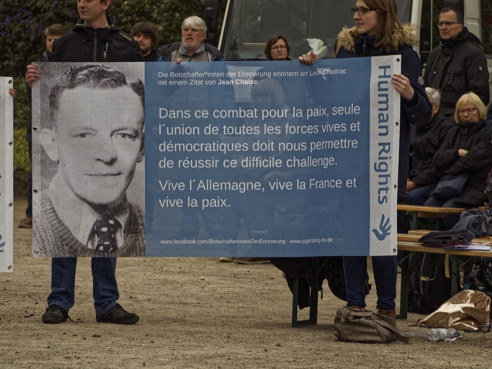 Sie erinnerte an die 35000 jungen Franzosen, die während der Jahre des Nationalsozialismus in Deutschland ermordet wurden und mahnte angesichts der „Fremdenfeindlichkeit in unseren Gesellschaften“ vor der Manipulation durch die Medien: „Seien Sie kritisch gegenüber sozialen Netzwerken.“