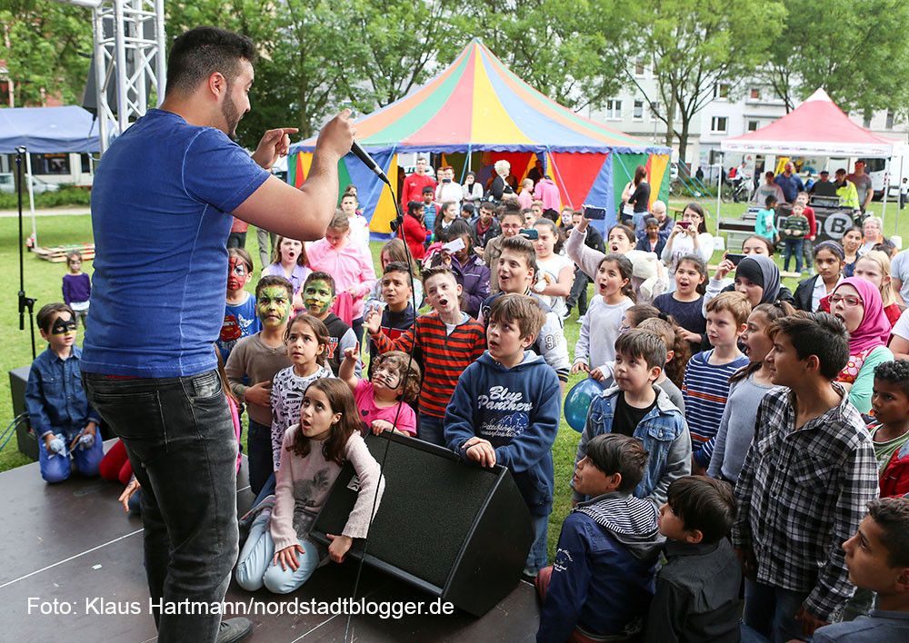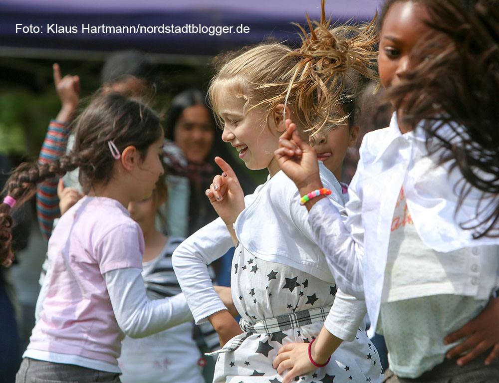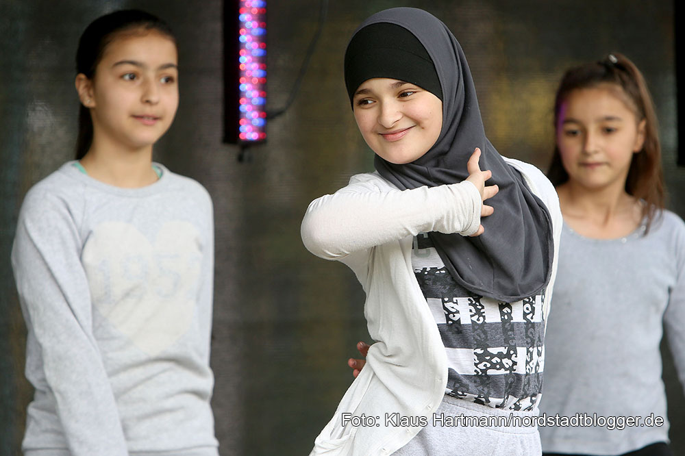 Auf der Bühne sorgen Tanz- und Gesangsgruppen der Schulen und Vereine aus dem Quartier Borsigplatz für gute Unterhaltung und laden zum Mittanzen ein.