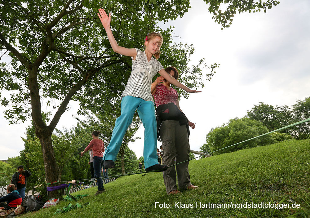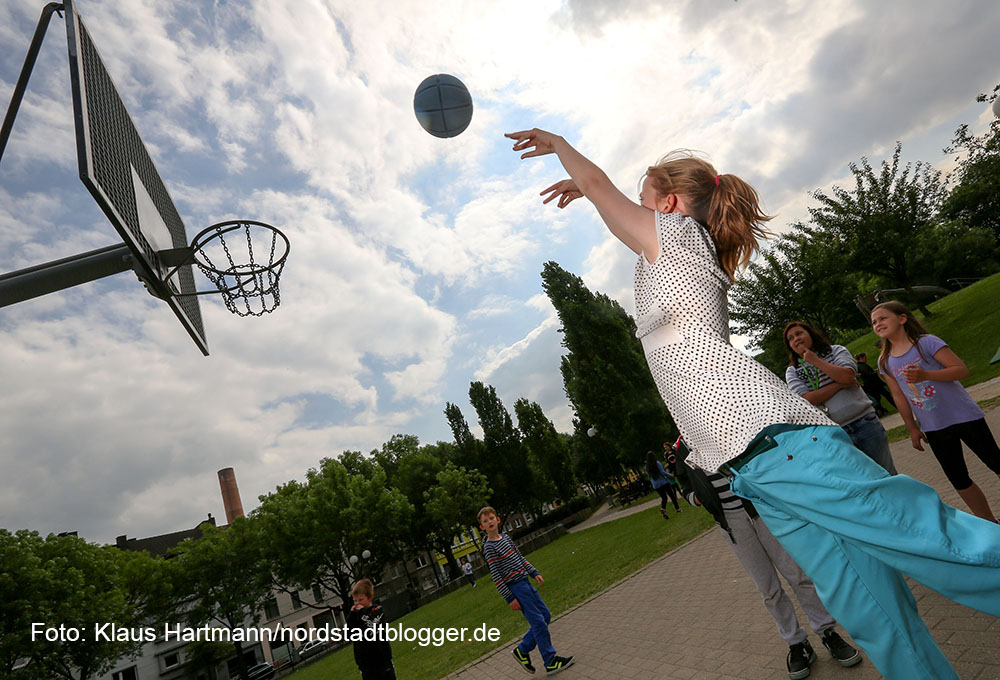 Bewegung war angesagt auf der Heroldwiese. Zu vielen sportlichen Spielen im Freien lud das Quartiersmanagement Nordstadt unter dem Motto „Borsigplatz bewegt sich“ zu einem großen Kinder- und Familienfest auf die Heroldwiese ein. Kooperationspartner ist der Gesprächskreis Borsigplatz.