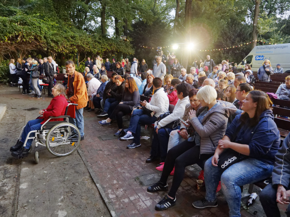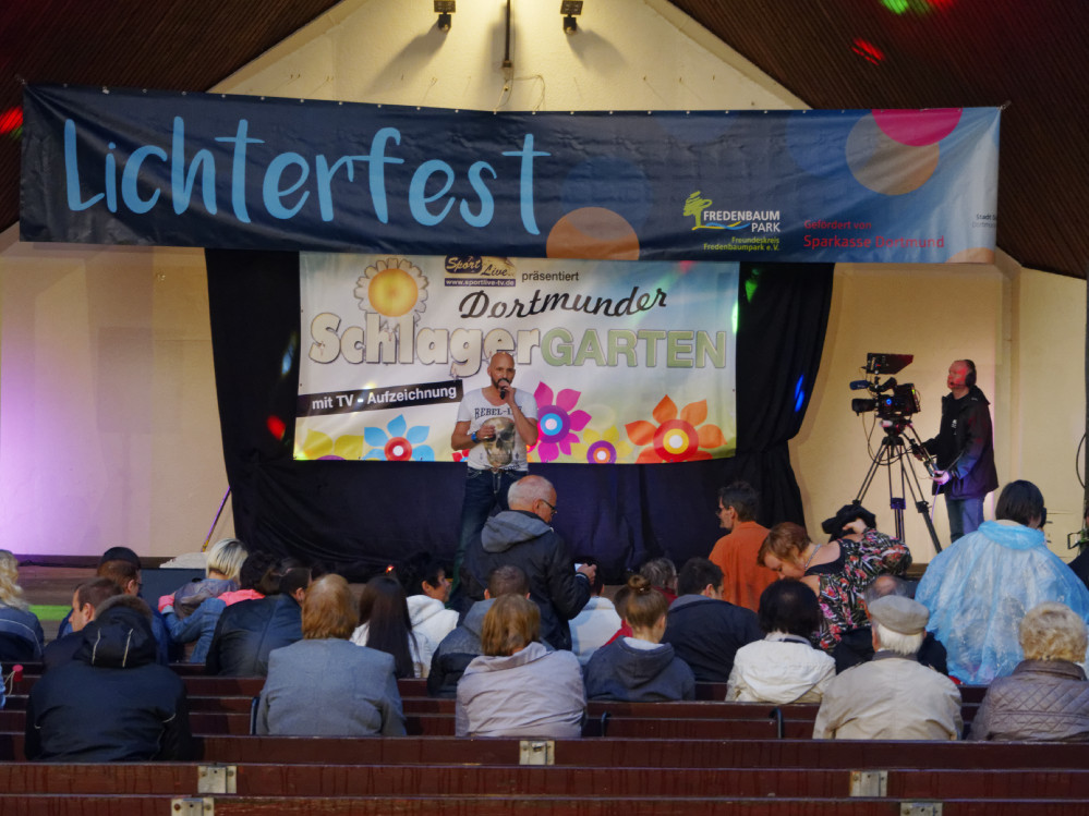 Das weitere Programm des Lichterfests konnte dann aber doch wie geplant ablaufen, weil sich der große Regen zum Abend verzogen hatte. Lediglich die Schlagerfans am Musikpavillon harrten schon frühzeitig noch im Regen aus, um sich beim „Schlagergarten“ von Sport Live TV die guten Plätze zu sichern und ihre Lieblingssänger auf der Musikbühne zu erleben.